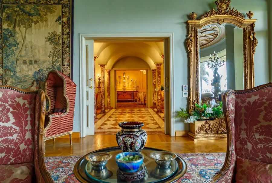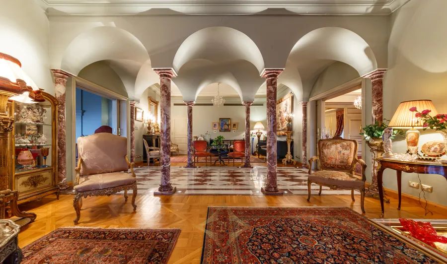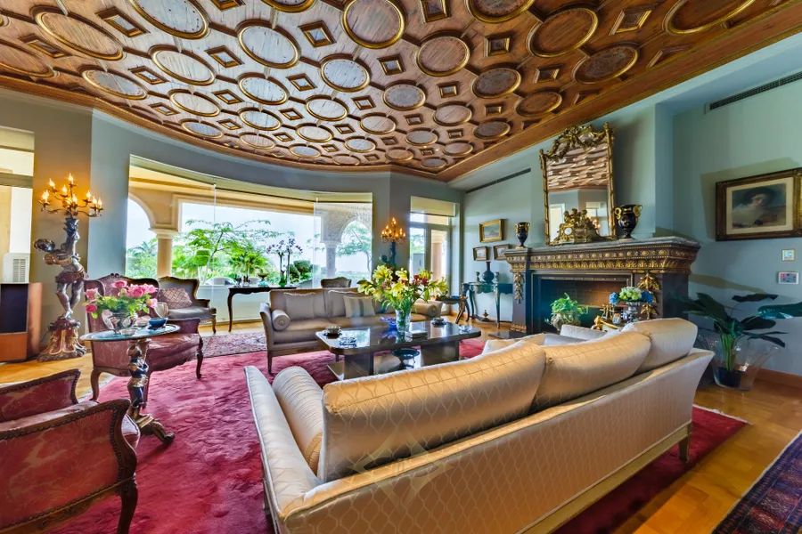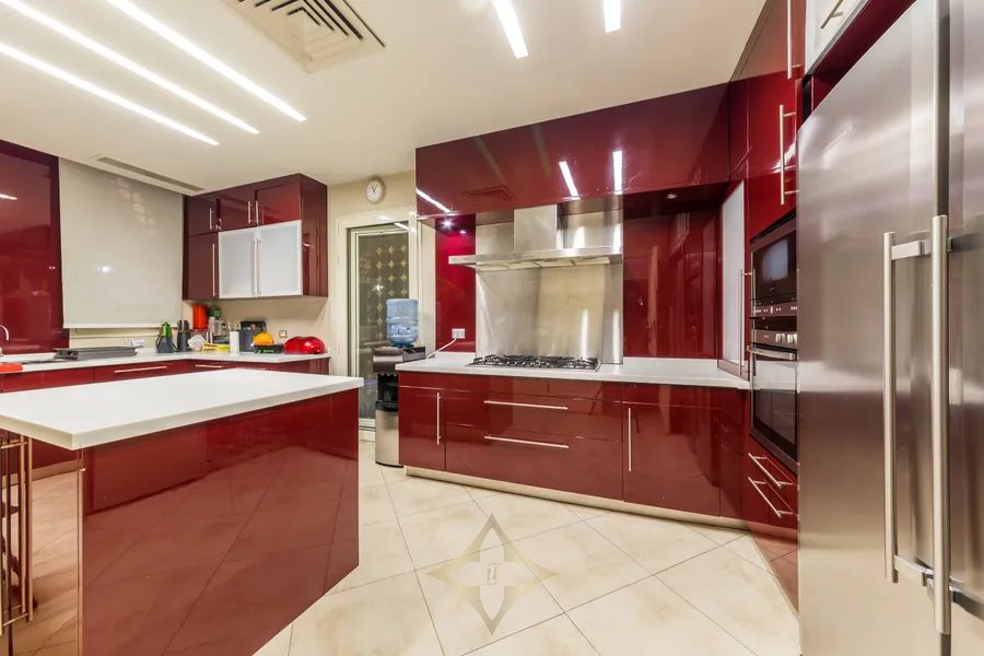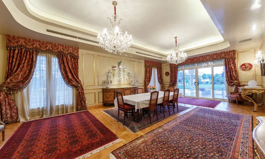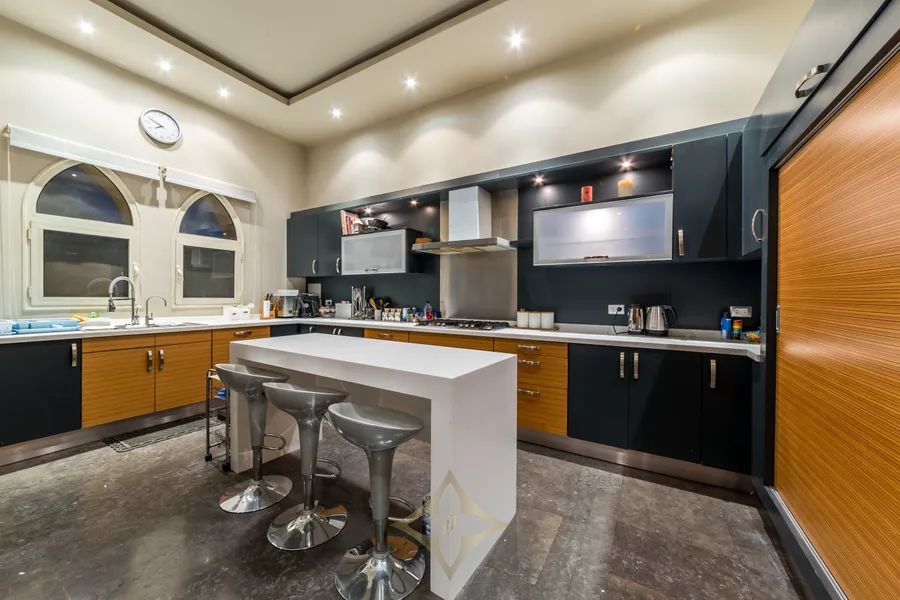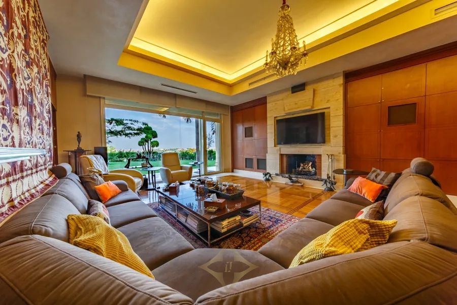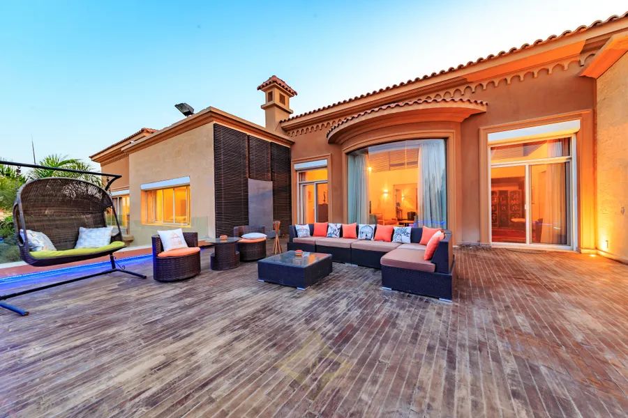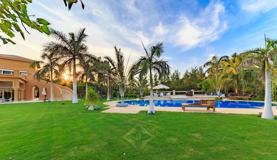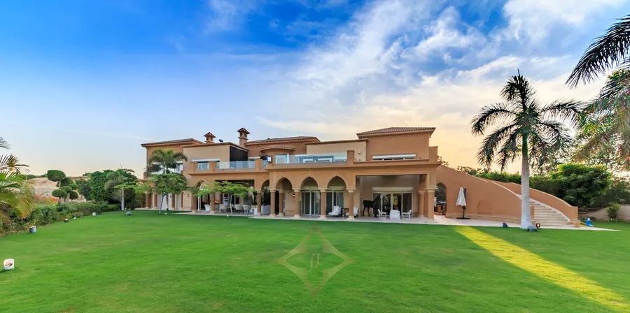 This splendid villa with Tuscan-inspired architecture is nestled in the tranquil compound of City View, on the Cairo-Alexandria Desert Road. Uniquely designed with spacious interiors and vast gardens, the property offers unparalleled open views onto the magnificent Pyramids of Giza. The interior layout spreads across 2,300 square meters with two storeys and a basement area. Both levels grant independent living spaces with a separate entrance for each, along with an internal elevator and staircase connecting them with the basement as well. The ground floor encompasses two expansive reception areas and grand dining room, each with large windows that open onto outdoor seating areas overlooking perennial gardens and a 150 square meter swimming pool. The family room is a cozy living space equipped with a fireplace. The master bedroom includes an en-suite bathroom, with its large jacuzzi and steam room, in addition to a dressing room. A second dressing room and bathroom are conveniently located adjacent to the master bedroom. With its multi-family nature, the second floor of this luxurious estate opens onto opulent reception, dining and living areas. The three bedrooms on this level each include their en-suite bathrooms. The upper terrace enables homeowners to enjoy the serene views. The technology incorporated throughout the entire property make it equipped to enjoy ultimate modern day living at the touch of your fingers. Home theaters in all bedrooms, central air conditioning, automated electricity control of temperature, lighting and the sound system, electric shutters and central boilers that work with natural gas name just a few perks of the system set-up. Modern CCTVS and unauthorized entry alarms keep the homeowners safe at all times.