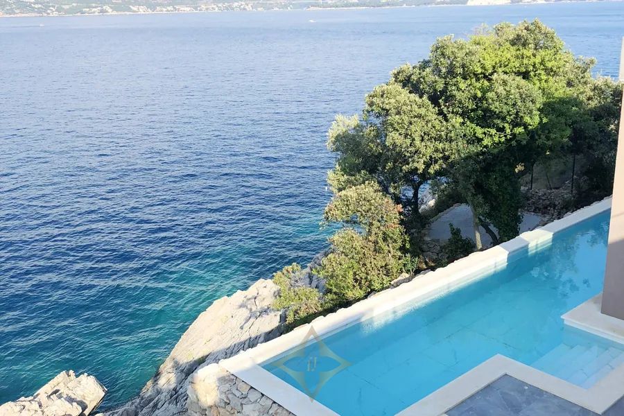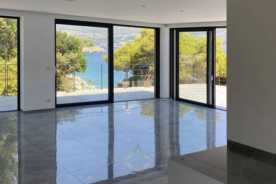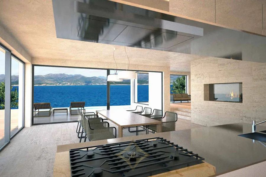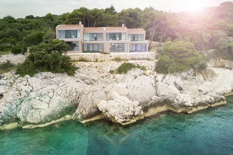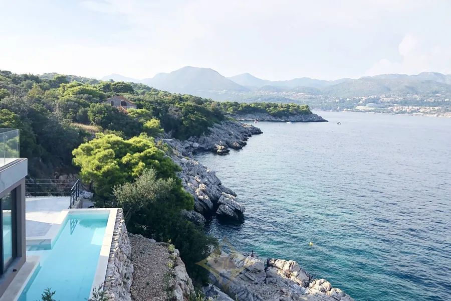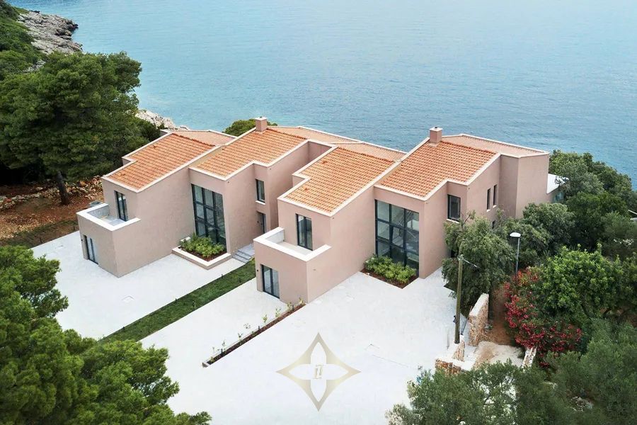 Dubrovnik archipelago, new construction, two luxury villas 608 m2 first row to the sea with a pool and a private road to the sea, on a plot of land measuring 5145 m2. Villa A of 233 m2 with terraces of 167 m2, which has 2 floors in a unique environment of nature and the sea, in peace and quiet. The lower floor consists of an entrance, a hall, a living room, a kitchen with a dining room, a bedroom with a bathroom and a toilet, and a beautiful large terrace with a swimming pool and a view of the sea. The upper floor consists of 3 bedrooms with bathrooms, a wardrobe, a hallway, a staircase, two terraces, and a balcony. Villa B of 232 m2 with terraces of 167 m2, which has 2 floors in a unique environment of nature and the sea, in peace and quiet. The lower floor consists of an entrance, a hall, a living room, a kitchen with a dining room, a bedroom with a bathroom and a toilet, and a terrace with a pool and a view of the sea. The upper floor consists of 3 bedrooms with bathrooms, a wardrobe, a hallway, a staircase, two terraces, and a balcony. The property consists of 2 residential buildings, i.e. two villas that can be joined into one villa. The property is 15 minutes away by boat from the unique city of Dubrovnik. Other information on request....