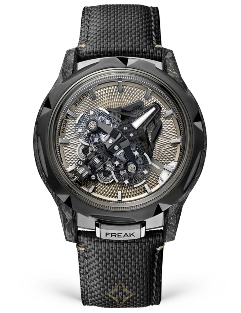 The Freak S Nomad is a testament to Ulysse Nardin’s deep love of fine watchmaking, the crafts and rare artisanal finishing techniques that define the most exquisite luxury watches. No element of the Freak S Nomad exemplifies this passion more than the hour disc that sits behind the carrousel “spaceship” movement. It features a diamond guilloché pattern with a sand-colored CVD finish, a nod to rolling sand dunes. Produced piece by piece by a skilled artisan, the painstaking method behind it takes years to learn and perfect.