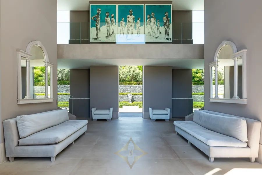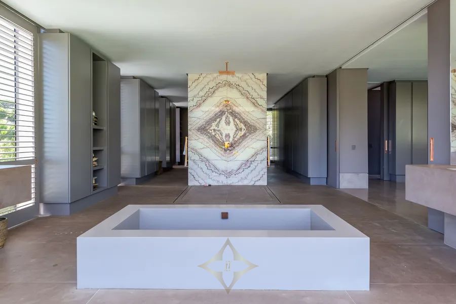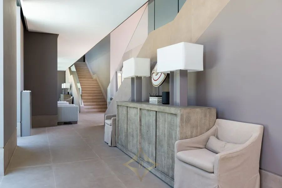 The lower level features two en suite bedrooms that open directly to a plunge pool and a peaceful lily pond. Designed with ultimate luxury in mind, the lower level also boasts a spa room with a pedicure parlour, steam room, and Jacuzzi. For entertainment, there is a wine cellar, a poker room, and a cinema, while a central games room provides access to a gym and squash court.