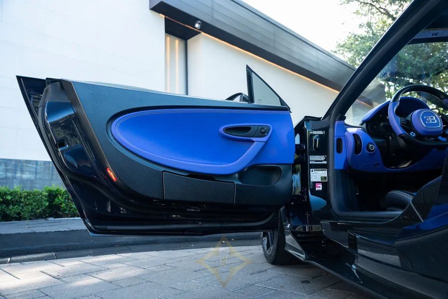 2020 Bugatti Chiron presented by Bugatti Houston. Grey Carbon and Lorelin with Indigo, Violet and Carbon Fiber interior, this Chiron features the Sky View Glass Roof, Caractere Wheels in Lorelin with Jaune Molsheim Wheel Caps and Brake Calipers, Horseshoe Grille and Engine Cover in Lorelin, Rear Wing Underside and Rear EB Logo in Jaune Molsheim, Rear Wing Mechanics in Black Anodized, Exhaust Deflector in Black Coated Finish, Rear Light Trim Painted in Nocturne, Trim Parts and Writing in Nocturne with Painted Jaune Accents, Trim Part Rear Light in Nocturne, Full Leather and Carbon Fiber Interior Finish, Comfort Seats, Trim Parts in Black Anodized, Inner Signature Line in Violet, and Rear View Mirror in Violet.Our Ceramic Coating Package has been applied to this vehicle to aid in protecting it against harmful environmental contaminants and extending the new car shine.The Post Oak Collection, a Post Oak Motor Cars company, is home to Bentley, Bugatti, Karma and Rolls-Royce Motor Cars Houston. Post Oak Motors is a lifestyle! We are headquartered in the elite Post Oak Complex in Uptown Houston, complete with elegant accommodations, high-end fashion, fine dining, luxury spa, and other sophisticated amenities. The Post Oak Collection The Woodlands is now open at the corner of Lake Robbins Drive and Woodloch Ct.Our dealership features a state-of-the-art service center, parts, and accessories boutiques along with Certified Brand Representatives that can assist you with any questions you may have about financing options, including Bitcoin and pricing details for this vehicle. Our team can also assist you with enclosed transportation and valuing your trade-in. Give us a call or simply come by the dealership for a test drive.