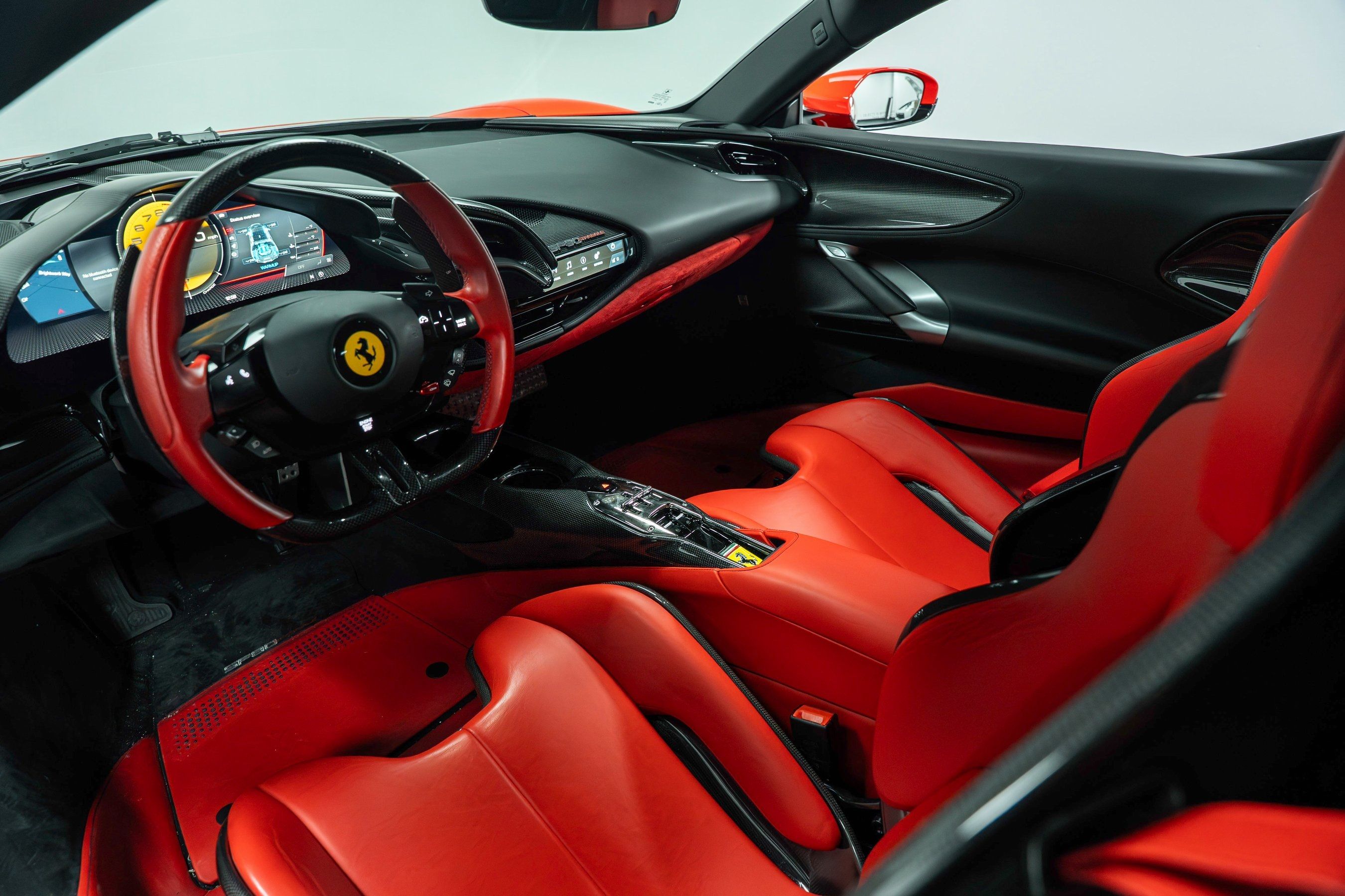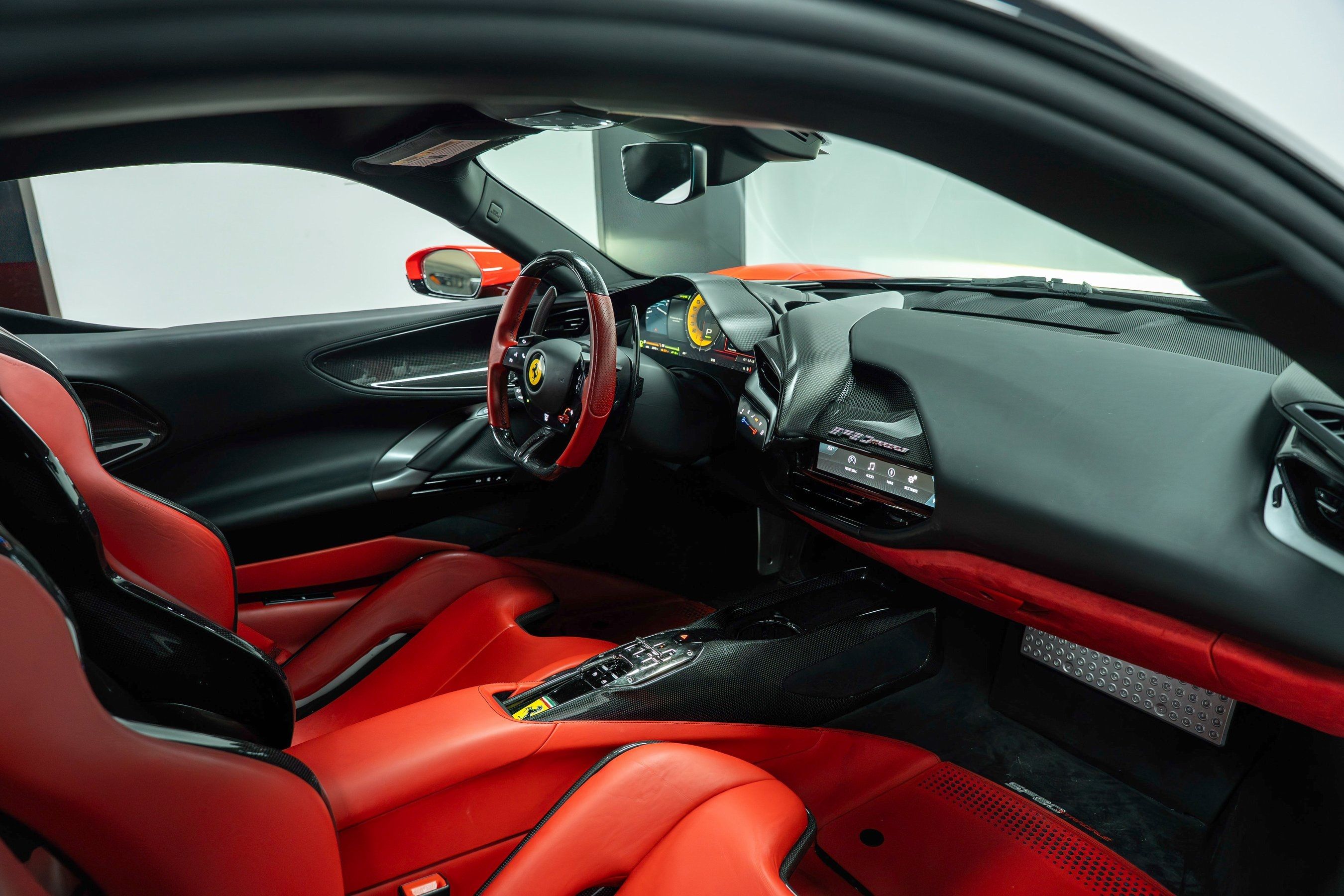 2021 Ferrari SF90 Stradale presented by Post Oak Motor Cars. Rosso Scuderia with Rosso Ferrari interior, this SF90 features 20" Dark Forged Wheels with Yellow Brake Calipers and Titanium Wheel Stud Bolts, USA Spec AFS System, Suspension Lifter, Front and Rear Parking Sensors, Scuderia Ferrari Fender Shields, Black Tailpipe Tips, Side Air Splitter and Rear Diffuser in Carbon Fiber, Driver Zone + LEDs, Instrument Cover, Rear Shelf, Dash Inserts, Door Panels, Upper Center Console Trim and Tunnel Trim all in Carbon Fiber, Large Size Carbon Fiber Racing Seats with Racing Seat Lifter and Cavallino Stitched on Headrests, Premium Hi-Fi Audio System, Colored Seatbelts in Rosso, Colored Interior Details in Nero, Colored Mats with Logo, Electrochromic Rear-View Mirror, Leather Headliner in Nero and Colored Steering Wheel in Rosso.This vehicle has already received our premium Paint Correction and Ceramic Coating treatment - an exclusive package professionally applied and included with your purchase.About Post Oak Motor Cars:Post Oak Motor Cars, a Fertitta Automotive Company, proudly represents Bentley, Rolls-Royce Motor Cars Houston, Bugatti, Karma, Lotus, Zenvo, Brabus, Hennessey, and Vintage Modern. Located in the prestigious Post Oak Complex in Uptown Houston, our flagship showroom offers an immersive luxury experience - surrounded by fine dining, designer fashion, luxury spa, and elegant accommodations. We also welcome you to our Lotus of The Woodlands showroom, located at 1501 Lake Robbins Drive. Our state-of-the-art service center and accessories boutique are supported by Certified Brand Representatives who can assist with: