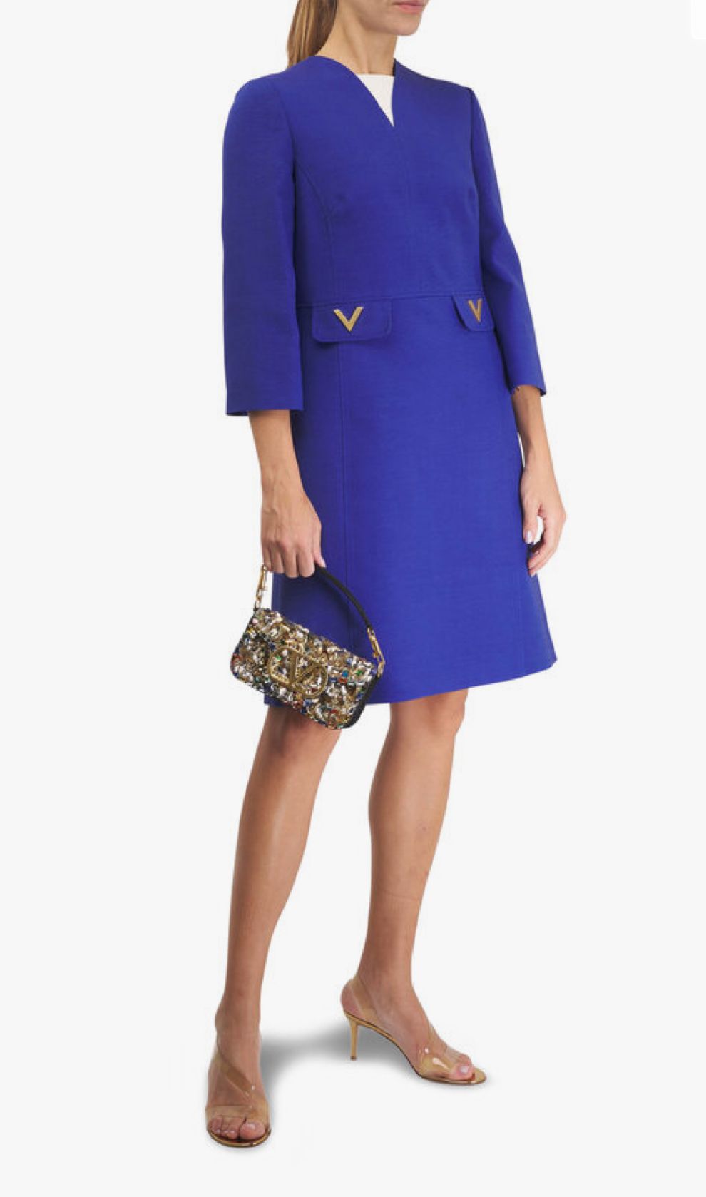 VALENTINO Admiral Blue Crepe Couture Midi Dress PRICE: $4,600 Product Code: 1764866 DETAILS 65% virgin wool, 35% silk; lined Dry clean V-neckline Concealed back zip V-logo pockets Made in Italy SIZE & FIT 38" shoulder to hem ——— Mitchells ED MITCHELL INC 670 Post Rd E, Westport, CT 06880, United States PHONE: +1 203-227-5165