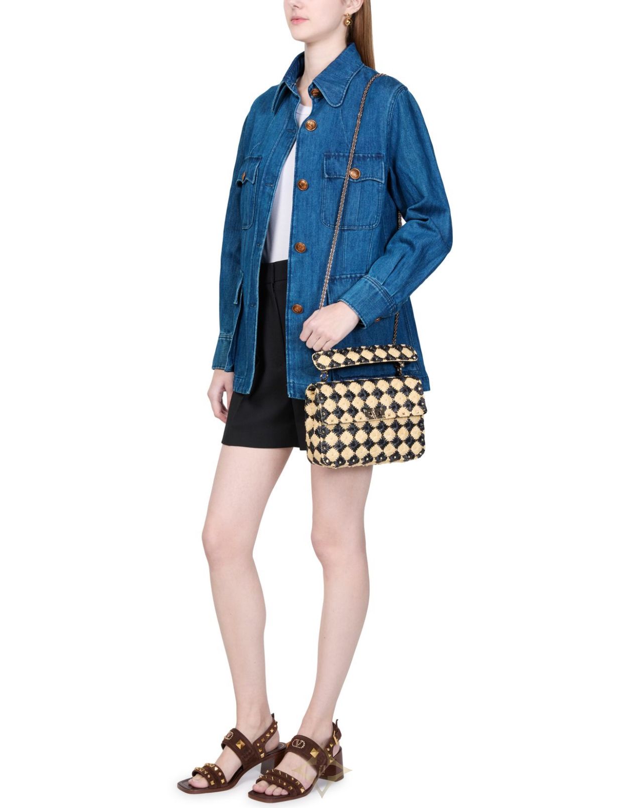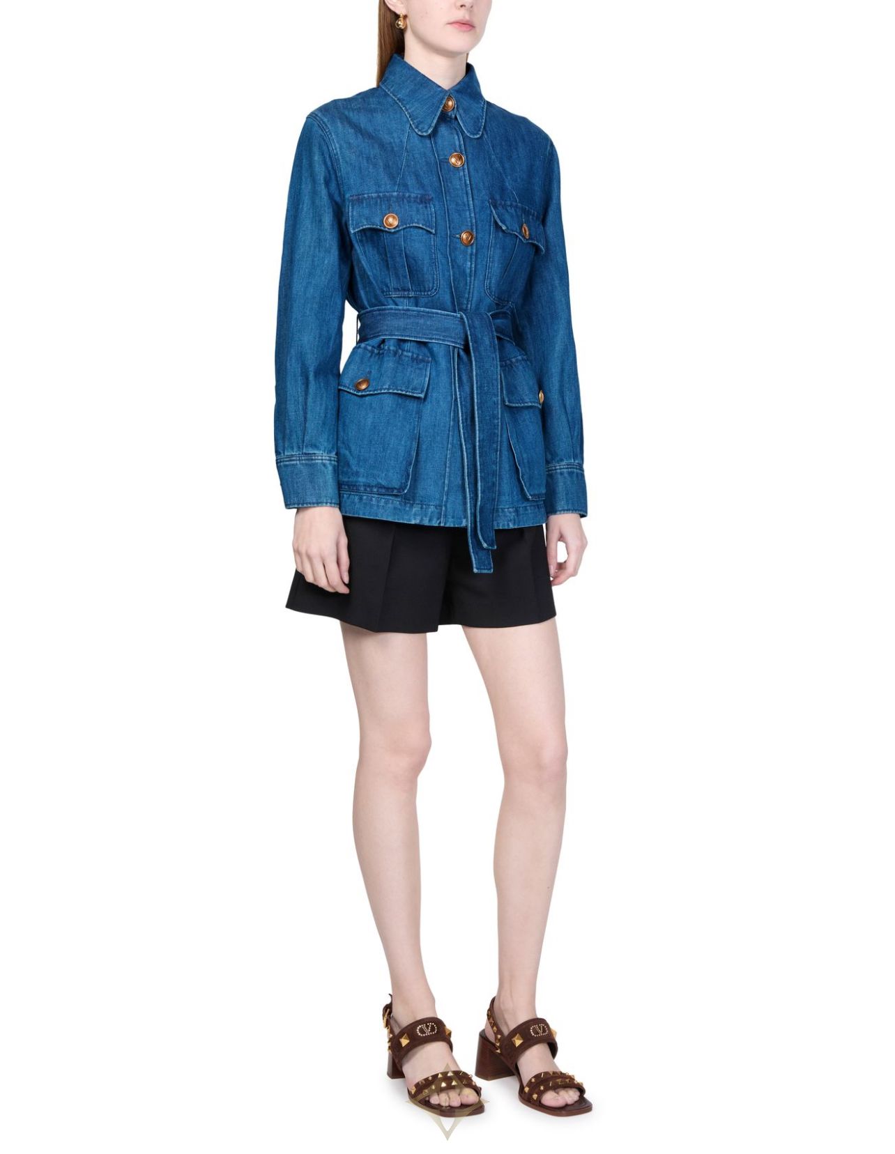 Valentino's Denim jacket showcases a long-sleeved design with a front buttoned closure that exudes effortless style. Featuring a breast pocket and two front flap pockets, it combines functionality with fashion. Embellished buttons add a unique touch, making this casual jacket a versatile piece for any wardrobe.