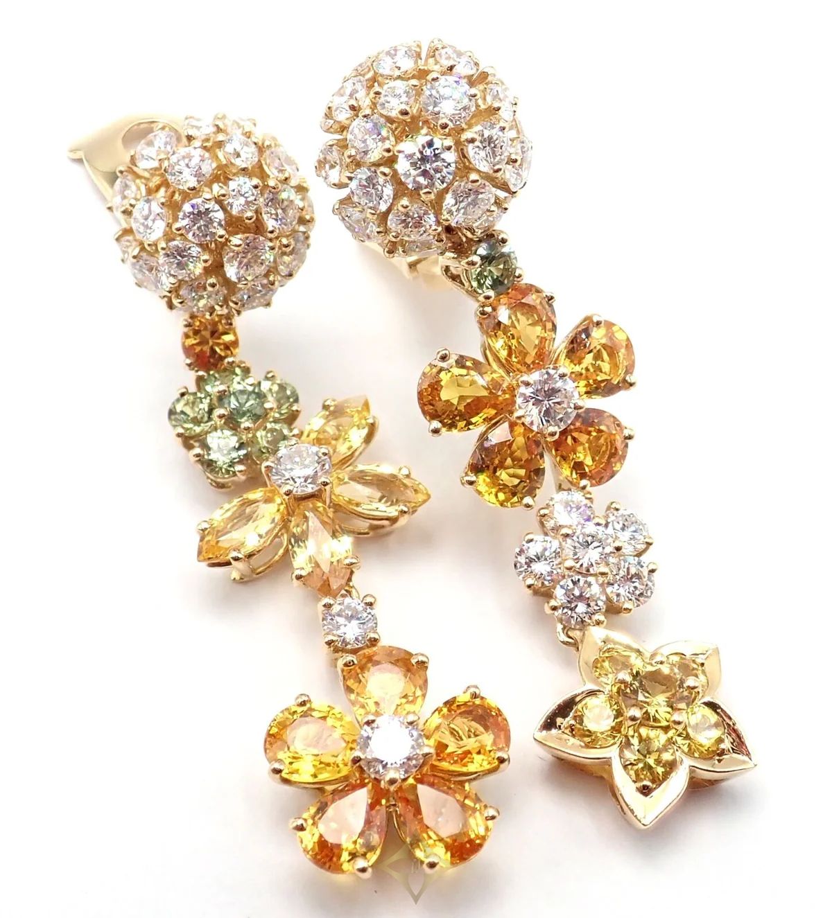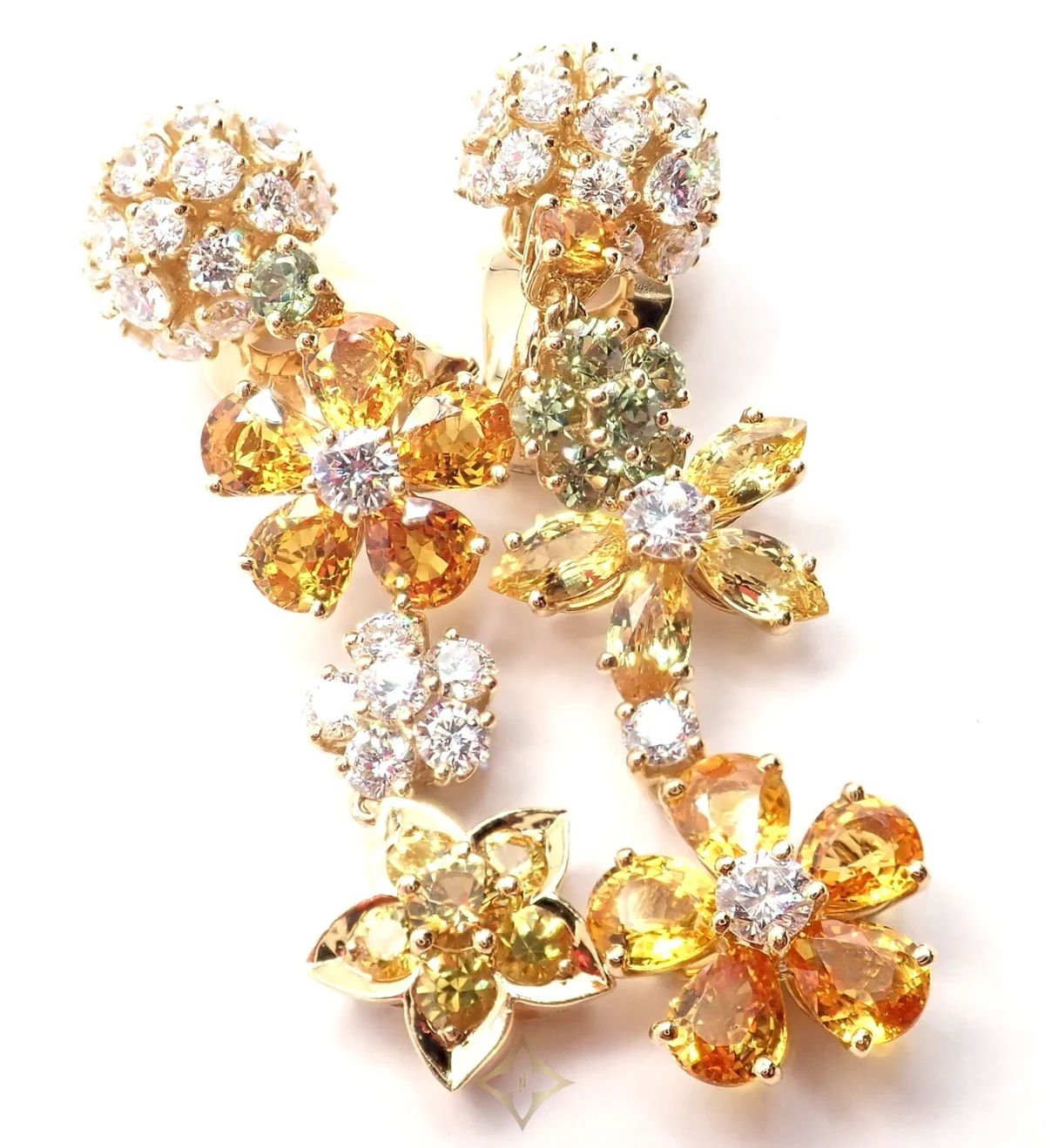 Van Cleef & Arpels Folies des Pres 18k Gold Diamond Sapphire Earrings