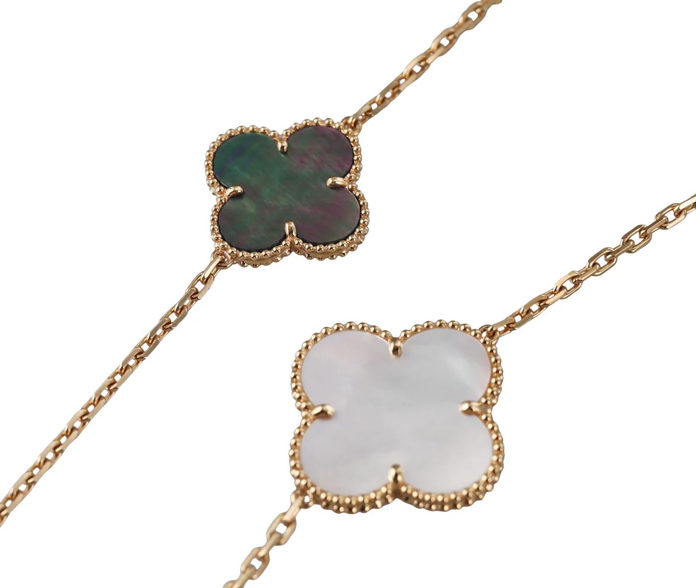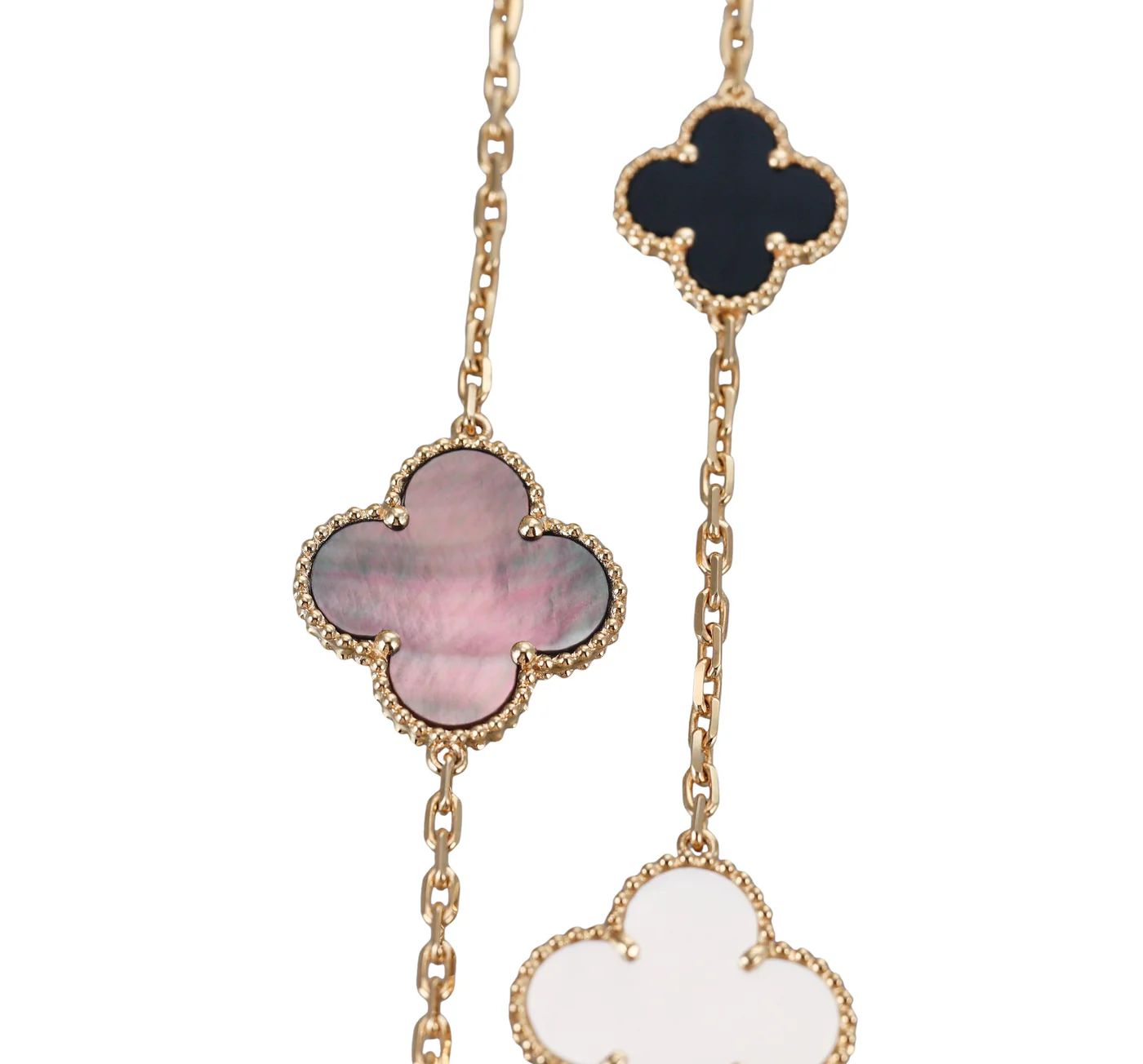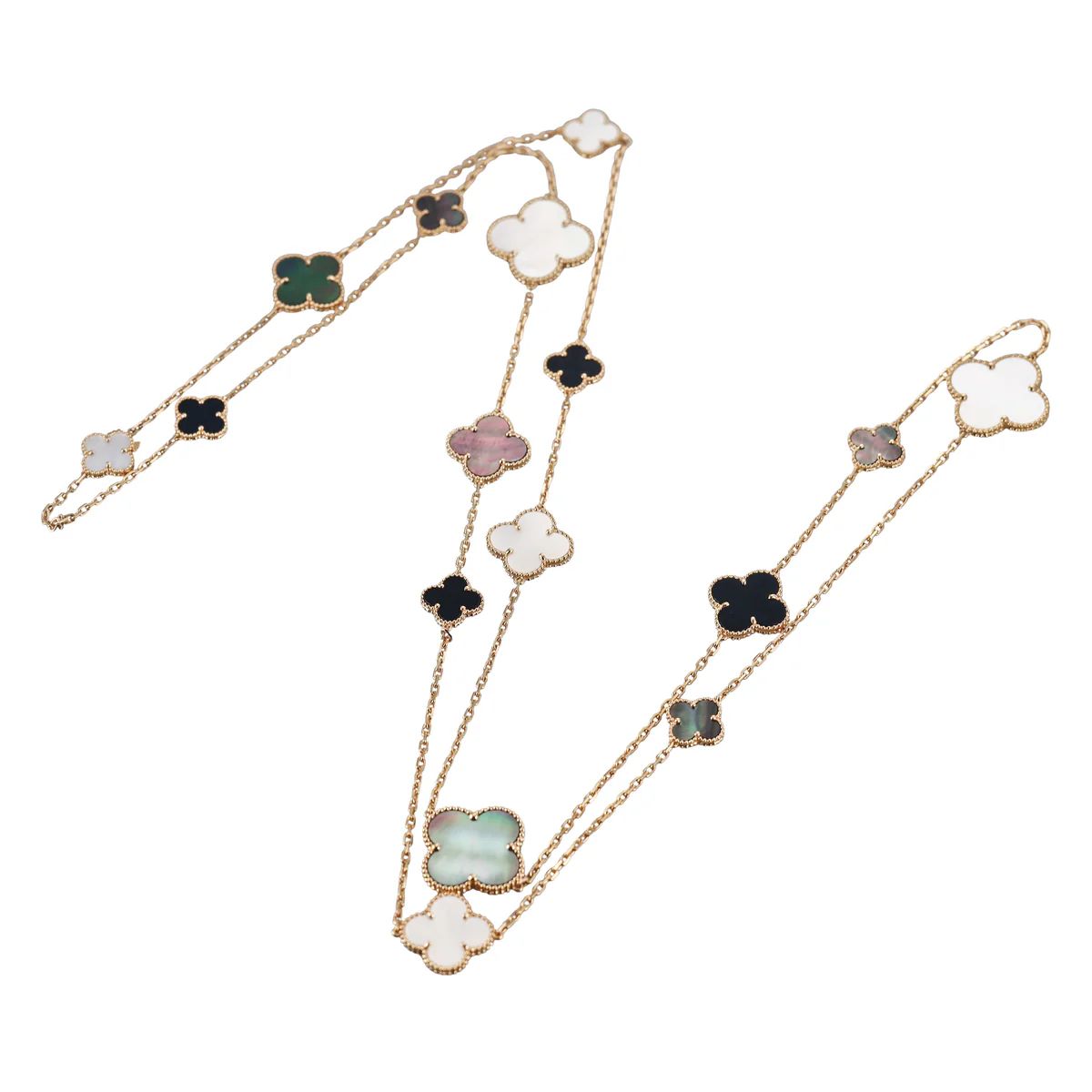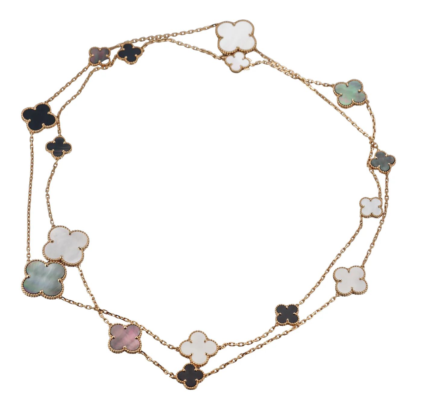 VAN CLEEF & ARPELS MAGIC ALHAMBRA MOTHER OF PEARL ONYX 16 MOTIF NECKLACE
