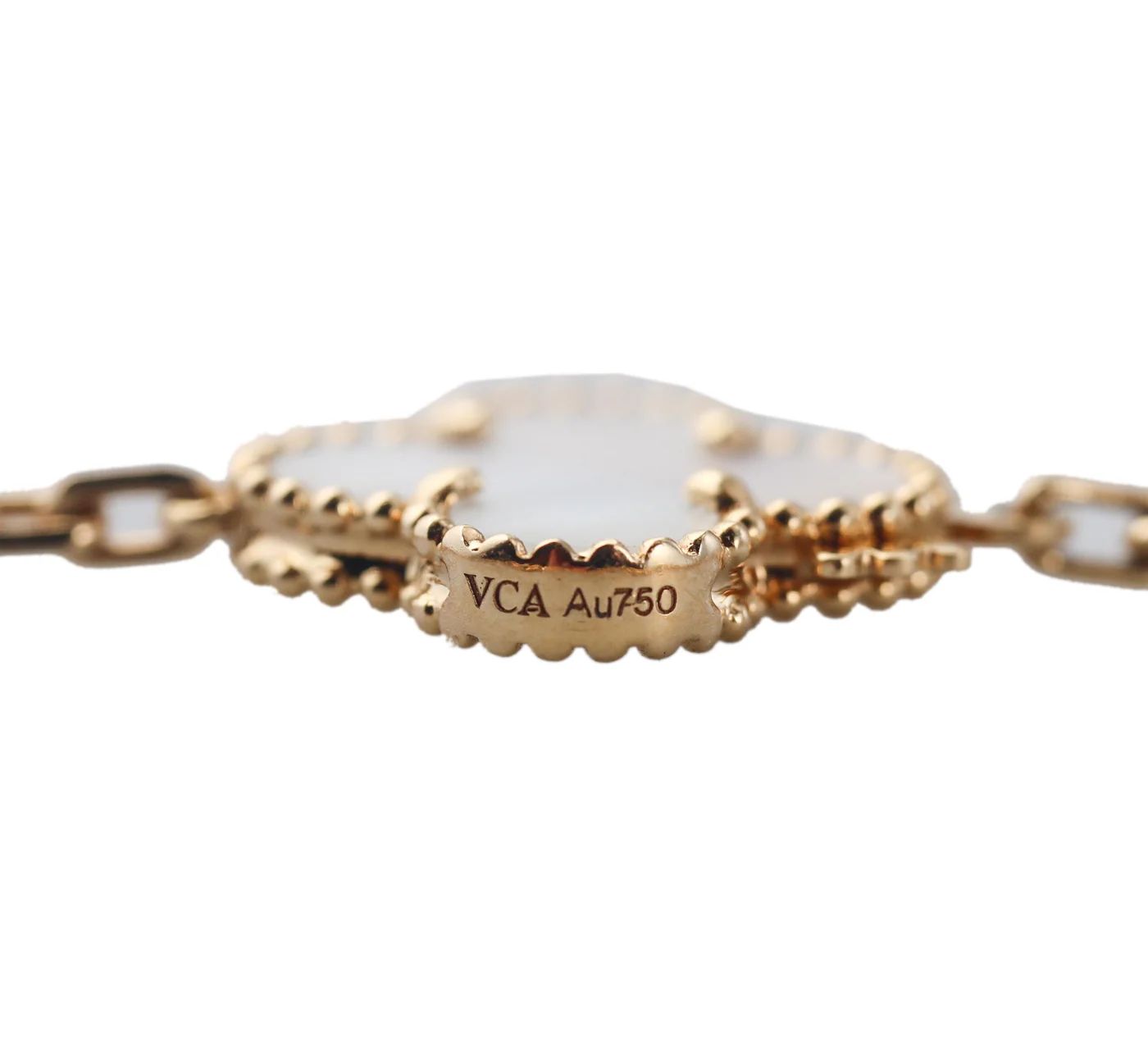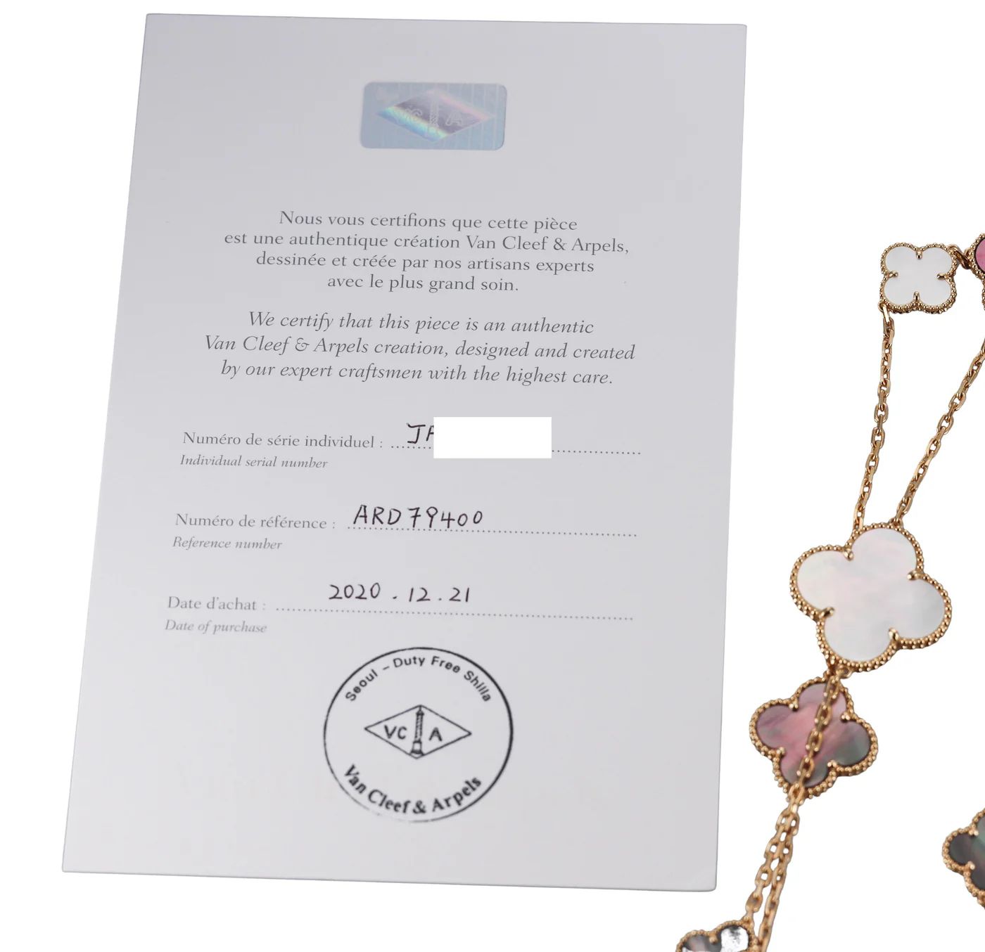 18k yellow gold Magic Alhambra necklace by Van Cleef & Arpels, with multi color mother of pearl and onyx motifs. Retail in 2025 $28200. Comes with VCA pouch and COA/receipt.