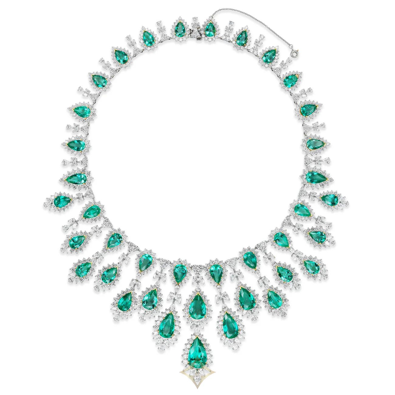 Van Necklace & Earrings Suite (220.66 ct Colombian Emeralds & Diamonds) in 18K Gold | NY 🇺🇸