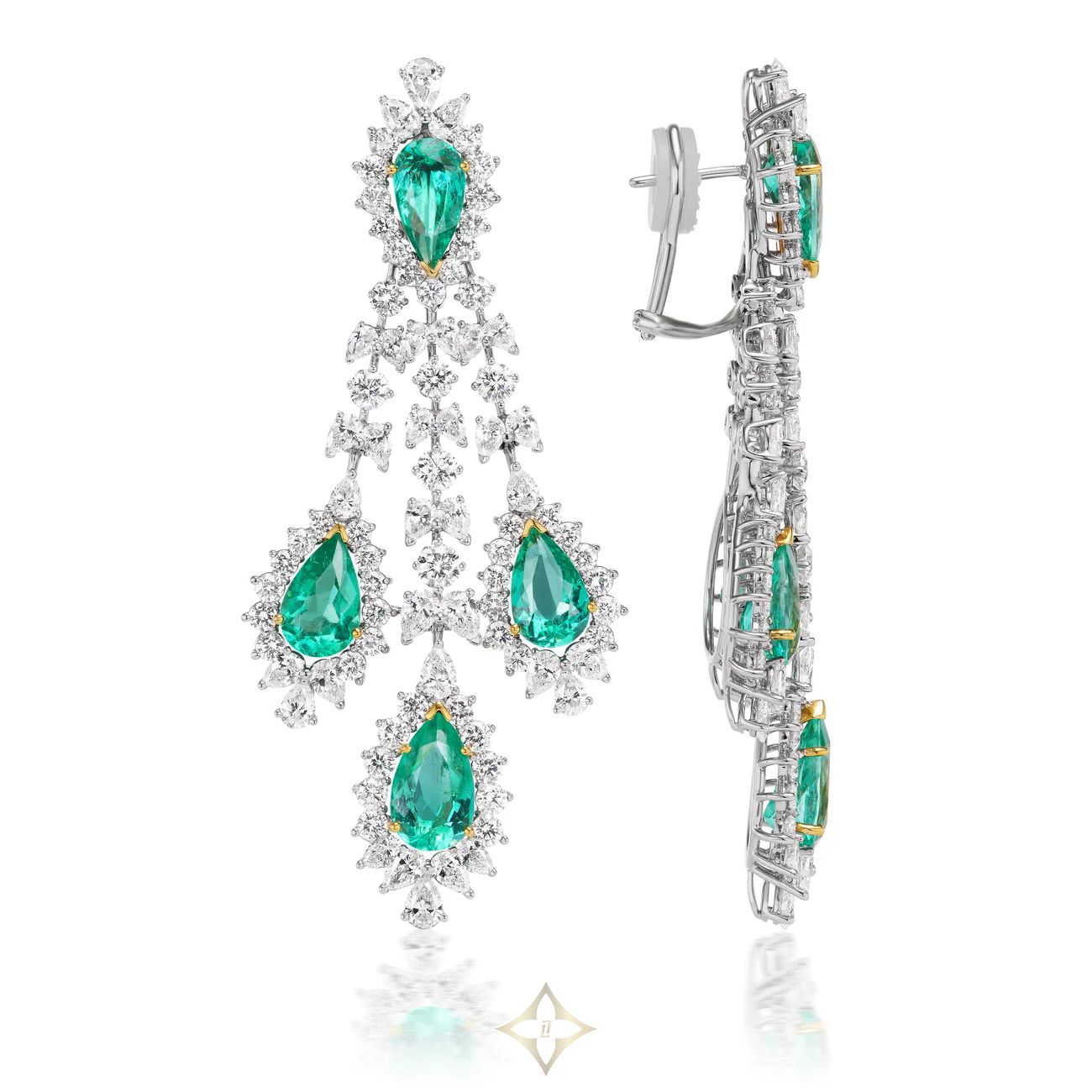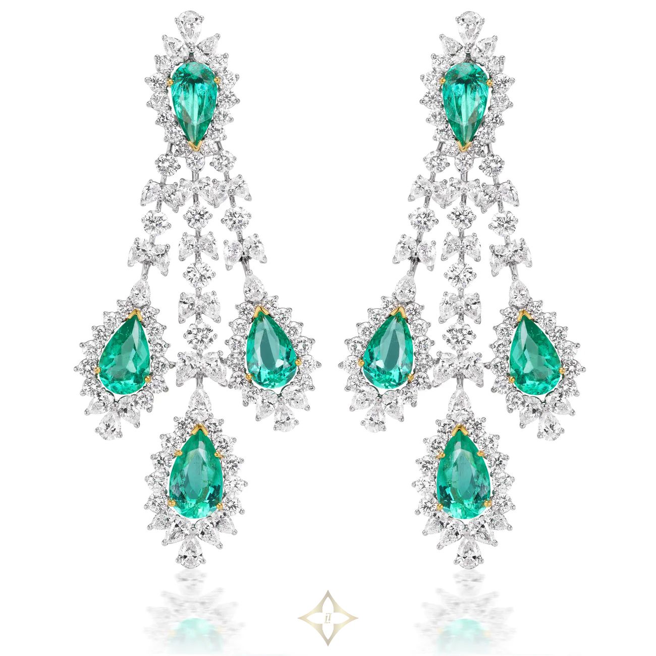 Van Necklace & Earrings Suite (220.66 ct Colombian Emeralds & Diamonds) in 18K Gold Price: 15.651.350.000₫ The Van Necklace & Earrings Suite is a ethereal depiction of nature. It is named after the Sanskrit word for forest - Van (pronounced akin to 'one'). The fine Colombian Emeralds juxtaposed with scintillating diamonds come together to create a suite that is royal, regal and charismatic. It stands out with the rare and exquisite gems it offers, through their luscious color and their glowy luminosity. Gemstones Type: Natural Colombian Emerald Gemstones Shape: Pear Shape Gemstones Weight: 116 ct Gemstones Color: Green Diamonds Shapes: Pear Shape & Round Total Diamonds Weight: 110.6 ct Diamonds Color: F - H Diamonds Clarity: VS - SI (Very Slightly Included - Slightly Included) Metal: 18K Gold Metal Wt: 147 gms Setting: Prong Set Beauvince Jewelry New York Beauvince Jewelry