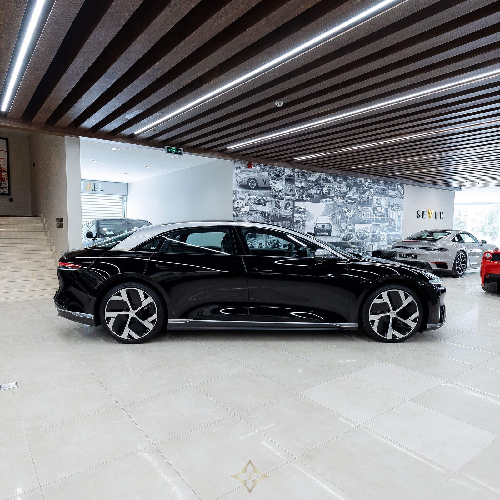The Lucid Air Dream Edition Performance has arrived! Featuring Saudi spec and a Santa Monica interior, it is the world's fastest-charging luxury EV, with an unmatched horsepower of 1111 hp and an unequaled range. All of this has been packed into an elegantly efficient design. Now available in our showroom.