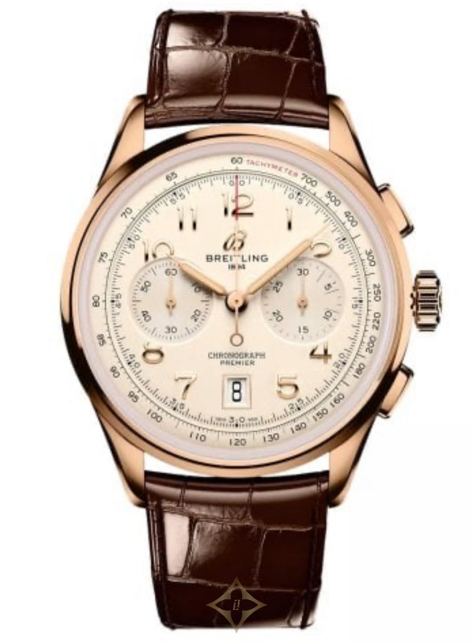 BREITLING PREMIER B01 CHRONOGRAPH 42 Code: RB0145371G1P1 PRICE: £17,100.00 PRODUCT DETAILS In the early 1940s, Willy Breitling was already dreaming of a time after the war, when utility would give way to unbridled optimism. He began designing a chronograph that would be functional but also undeniably elegant and infinitely wearablein his words, the unmistakable stamp of impeccable taste. He called this new line the Premier. To create its modern Premier, Breitling preserved distinctive vintage-Premier details, including the smooth fixed bezel, twin-register dial, streamlined rectangular pushers and applied Arabic numerals. The Premier B01 Chronograph 42 is available in an array of dial colors and case materials. It comes on a choice of classic alligator leather strap or sleek 7-row metal bracelet. Todays Premier also lives up to Willy Breitlings uncompromising technical standards with its exceptional self-winding movementthe COSC-certified Breitling Manufacture Caliber 01designed for maximum precision, reliability and functionality. MOVEMENT Caliber Breitling 01 (Manufacture) Movement Self-winding mechanical Power reserve Approx. 70 hrs Chronograph 1/4 second, 30 minutes Vibration 28,800 v.p.h Jewel 41 jewels Calendar Dial aperture CASE Case material 18k red gold Caseback Screwed in (sapphire crystal) Water resistance 10 bars Bezel Fixed Crown Non screw-locked, two gaskets Crystal Cambered sapphire, glareproofed both sides DIMENSIONS Product Weight (Approx.) 144.0 g. Watch-head Weight (Approx.) 111.0 g. Diameter 42.0 mm Thickness 13.6 mm mm Height (upper lug tip to lower lug tip) 50.0 mm Lug width (in-between lug) 22.0 mm STRAP Strap material Alligator leather Strap color Brown Strap type Curved Lug 22/18 mm Buckle Material 18k red gold Buckle type Folding clasp Buckle size 18 mm ——-/ Market Cross Jewellers Market Cross Jewellers, 60 Linthorpe Road, Middlesbrough, United Kingdom Phone: +44 1642 245112 Email: enquiries@marketcrossjewellers.com MIDDLESBROUGH STORE 60 Linthorpe Road, Middlesbrough, Cleveland