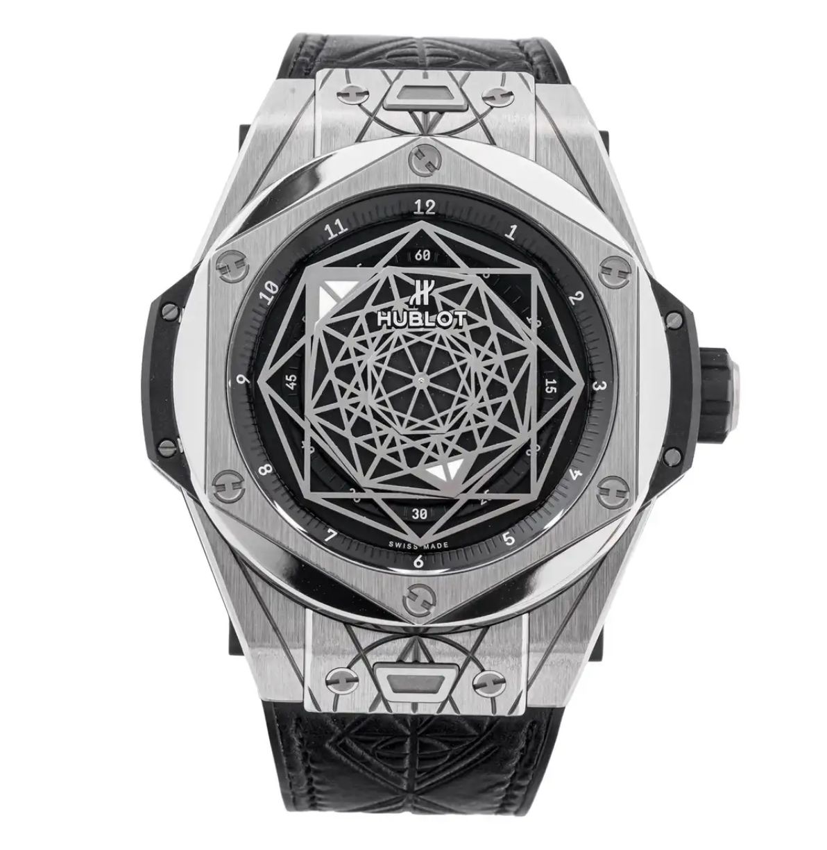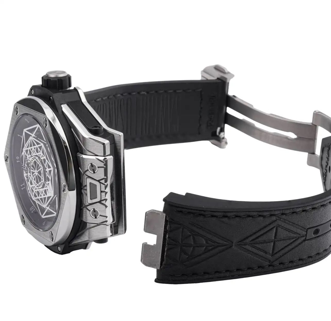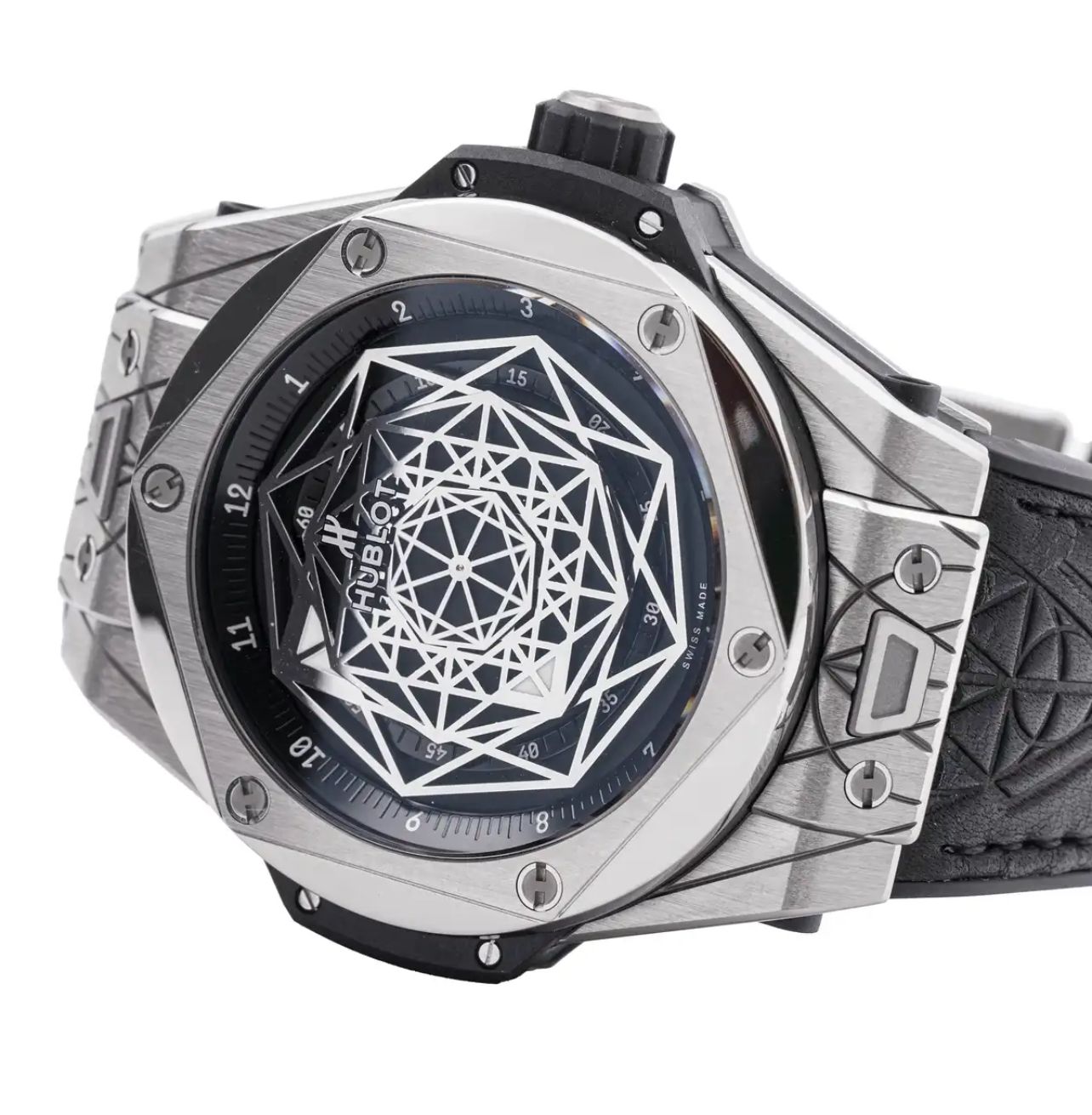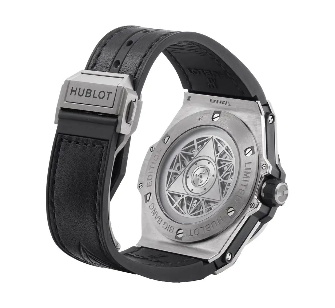 Limited Edition Hublot Big Bang 415.NX.1112.VR.MXM16 Box Papers Year 2016 Condition: Excellent PRICE: £14,995 RRP: Discontinued Specification Box: Yes Papers: Yes Year: 2016 Product Code: 358042 Watchfinder Warranty: 24 months Case Size: 45 MM Case Material: Titanium Movement: Automatic Bracelet: Leather - Black & Rubber (length 18.5 cm) Dial Type: Black Arabic Water Resistance: 100 metres ——— Watchfinder & Co. London Boutique The Royal Exchange, London EC3V 3LQ, United Kingdom Phone: +44 20 8150 8767 Email: aftersales@watchfinder.co.uk