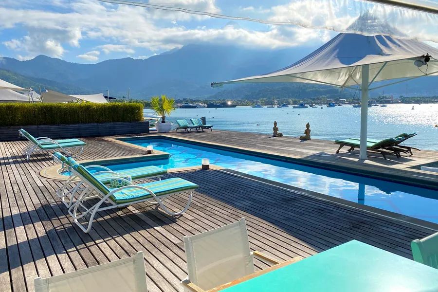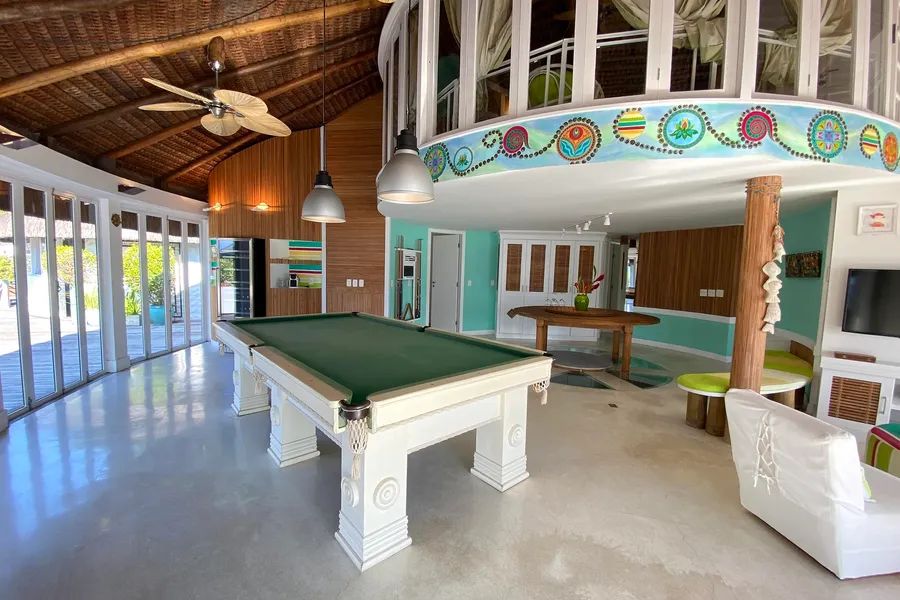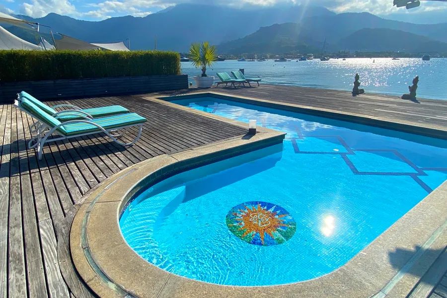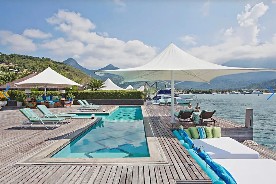 Located within the Porto Frade condominium in Angra dos Reis, this stunning house is positioned right on the waterfront, featuring a leisure deck with a lap pool and docking space for yachts over 100 feet. The residence boasts seven bedrooms, including six suites, comfortably accommodating up to 14 guests. The social area includes a living room with a TV, seamlessly integrated with the dining room and a game room with a pool table, as well as a fully equipped kitchen and laundry area. Outside, the spacious deck houses a heated pool with a hot tub, perfect for leisure and relaxation. Ilha Capivari, spanning 6,500 m², is located just 300 meters from the Porto Frade condominium and the Fasano Hotel. It offers top-tier infrastructure, including a gym, massage room, pool, sauna, cistern with a 140,000-liter capacity, a powerful generator and transformer for uninterrupted energy supply, a radio room, and an ice-making machine. Submarine lines provide fresh water, electricity, telephone, and intercom services, while the mainland facilities include individual garages for nautical equipment and a caretaker’s house. Porto Frade enhances the experience with its clubhouse, gym, tennis and multi-sport courts, pool, sauna, and restaurant. The iconic 18-hole golf course, a certified helipad, and trails leading to waterfalls and diving pools add to the region’s appeal. The Boulevard Carlos Borges, adjacent to the Fasano Hotel, features convenience stores, fashion boutiques, delicatessens, and restaurants, offering diverse gastronomy and entertainment to make the most of your stay in Frade.