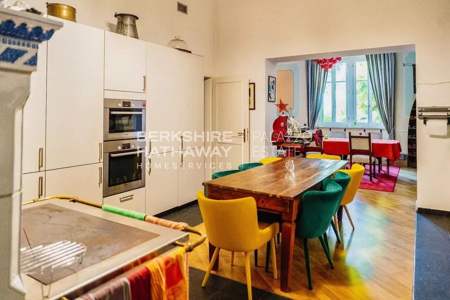Across the upper floors, the villa offers a total of nine bedrooms and ten bathrooms, thoughtfully distributed among several independent apartments, ideal for hosting guests or family with complete privacy. The master suite opens onto a spectacular 90 sqm terrace offering panoramic views over Lake Maggiore.