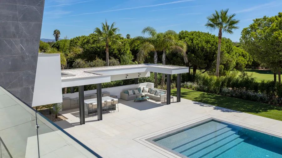This remarkable villa combines outstanding contemporary architecture with 2,100sqm of beautifully landscaped grounds, in one of the most sought-after locations in Quinta do Lago. Southeast-facing and overlooking the prestigious São Lourenço golf course, the property offers a rare balance of elegance, comfort, and lifestyle.