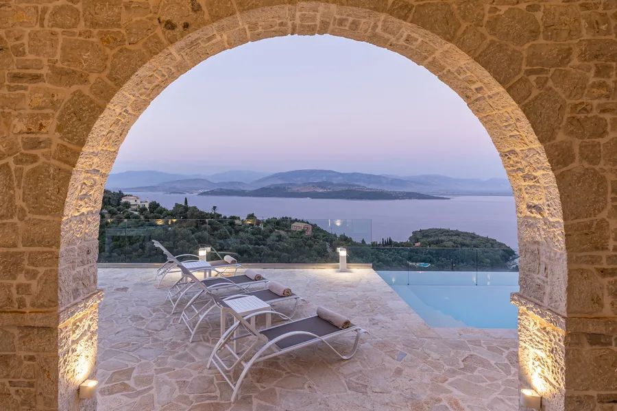 With a prime location in the area of San Stefanos on the north east coast, this beautiful 4-bedroom property with private pool and great external living spaces enjoys simply amazing panoramic views towards Kerasia Bay, the coast and sea across to mainland Albania. Contemporary in style and in immaculate condition, it is the perfect family villa, holiday home or investment opportunity with huge rental potential in a highly sought-after area.