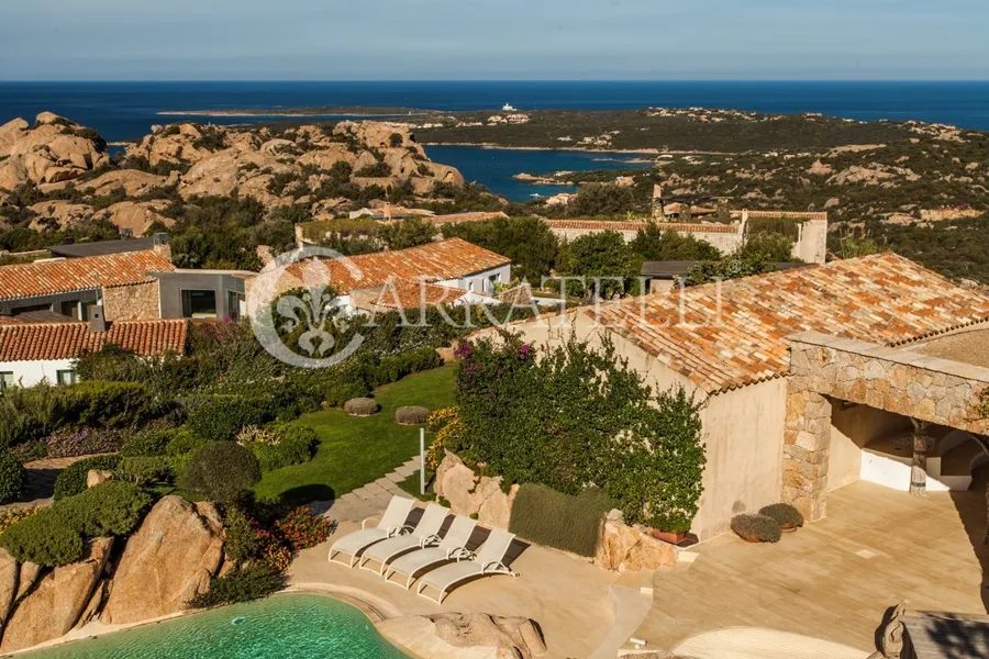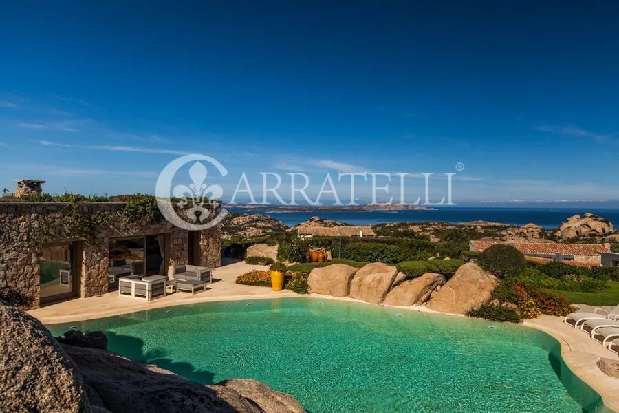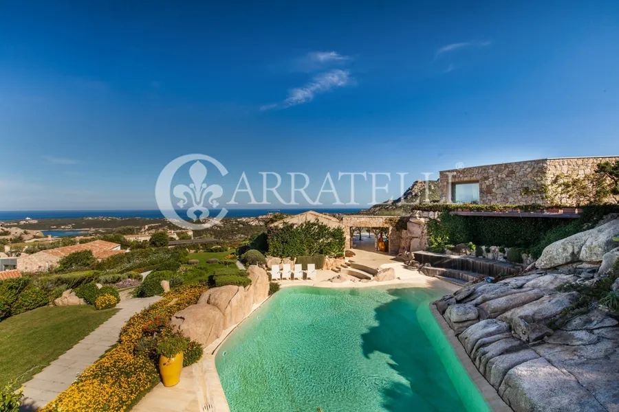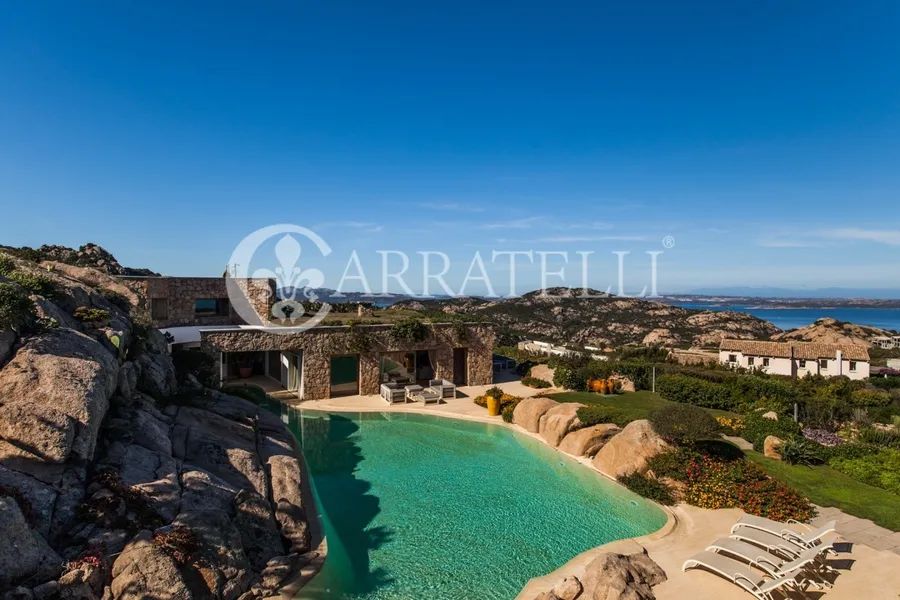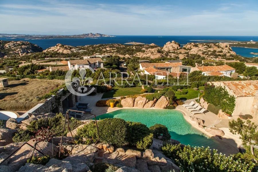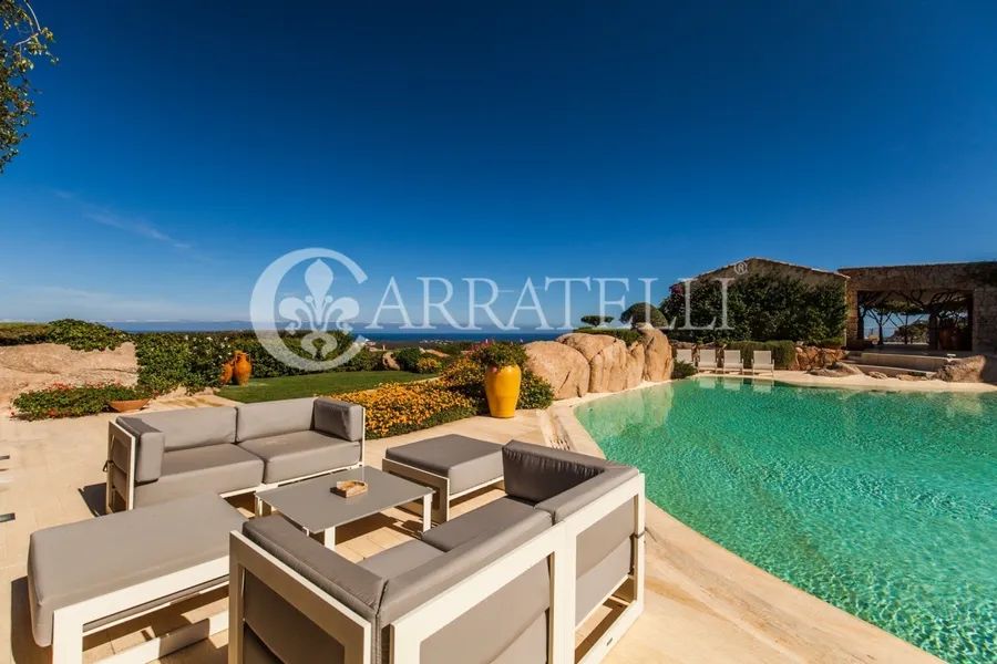 We are pleased to present this splendid villa on the hills of Miata with swimming pool, within a sector of extra-luxury properties, built by the best known architects worldwide. The Villa is just a few minutes from all services and at the same time immersed in the quiet, granite rocks and the thousand colors of Gallurese Sardinia. LOCATION & LIFESTYLE The Villa in Arzachena, in the province of Sassari, not far from Liscia di Vacca and Porto Cervo, inside a property surrounded by greenery and overlooking the rolling hills of Miata, inside an exclusive residence a few steps from the sea. It is 3 km from the nuragic complex of Albucciu, 6 km from the tomb of the giants of Li Lolghi, known for the monoliths soaring from the earth, and 9 km from the Cannigione beach. DESCRIPTION