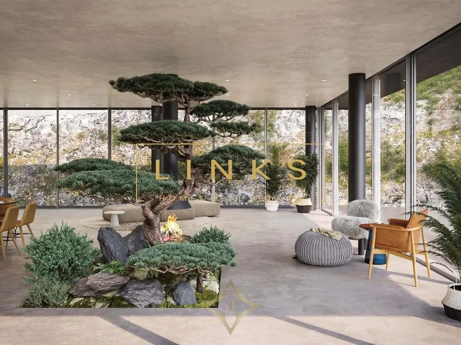The villa’s structure incorporates integrated toilets, showers, and sinks with breathtaking views. Features include an indoor bedroom spa bath, 3 bedrooms, an open-plan kitchen, and an infinity pool for sunbathing and refreshing dips. On colder days, warmth awaits by the fireplace.