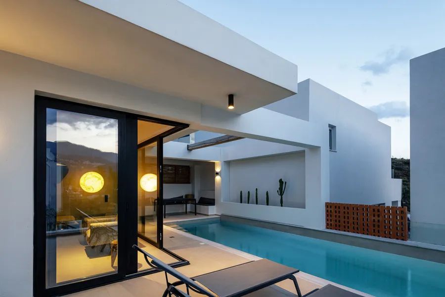 Step out your door and stroll just five minutes to the soft sands of Plakias Beach — then return to Myrrine, a private retreat where light, design, and nature meet in perfect harmony. Comprising two elegant villas, twin private pools, and sweeping sea views, this rare property redefines contemporary coastal living on Crete’s southern shore.
