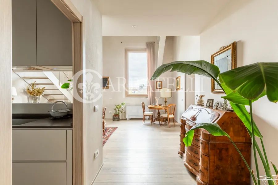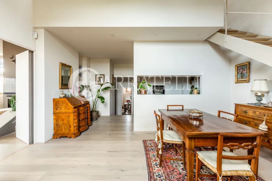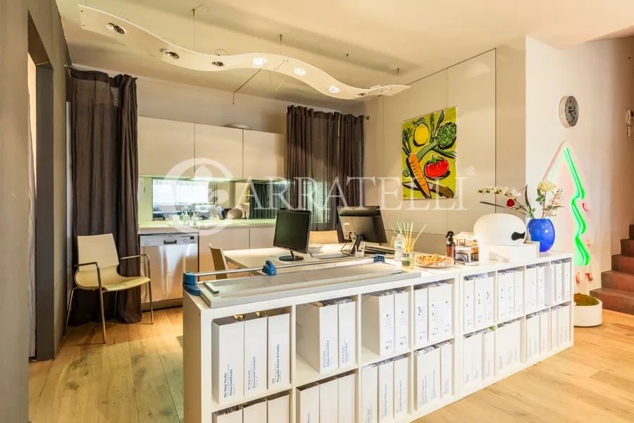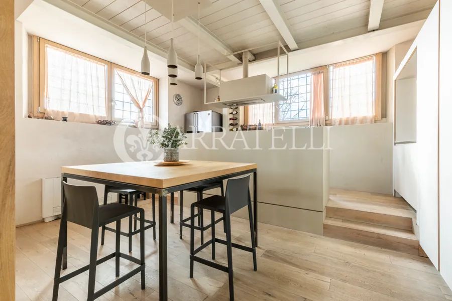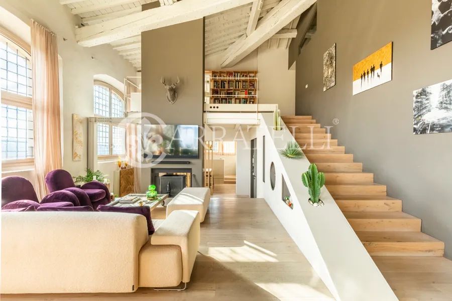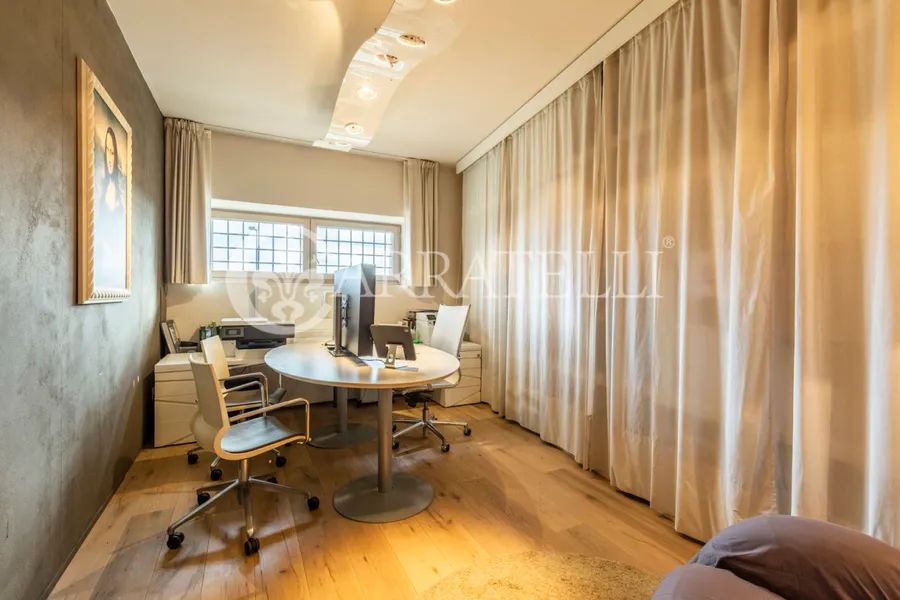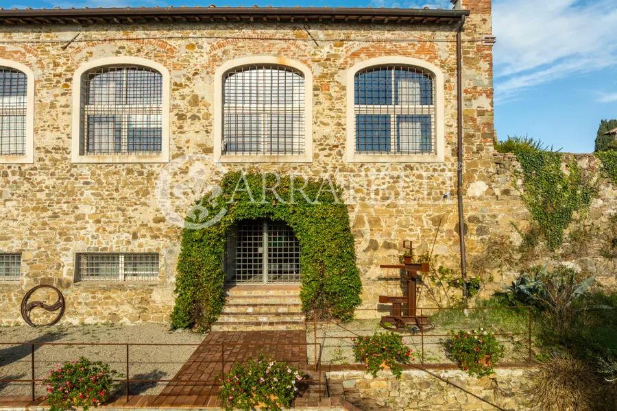 On the first hills of Florence, in Pian dei Giullari, this prestigious portion of a former private wood shed is part of a complex dating back to the 15th century, around 1400, converted into a residence in 2016. The property, protected as a site of historical-architectural interest, is situated within an exclusive condominium of only two units with equal shares. The total gross area is approximately 525 sqm distributed over three levels, characterized by spacious, bright environments and a refined blend of historic architecture and contemporary design. The living level is accessible via an internal staircase and offers a large double lounge, extremely luminous thanks to large glass walls that guarantee a constant natural light throughout the day. Currently on this level are two kitchens, a dressing room, and a bathroom. The first floor hosts the main sleeping area, consisting of three bedrooms and three bathrooms, designed for comfort, privacy, and functionality. On the ground floor, there is an additional apartment, presently used as an office but cadastrally registered as a residential unit. This space includes a living room, kitchen, one bedroom, and a bathroom, ideal as an independent unit for guests, staff, or professional use.