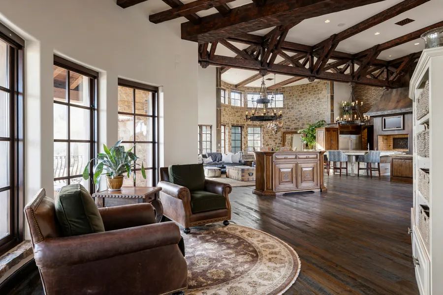 Designed for effortless living, the primary suite, kitchen, office, main garage, and guest casita are all located on the main level with no interior steps. Car enthusiasts will appreciate the remarkable 12-car garage, offering four above-ground stalls and eight below via a two-car hydraulic lift.