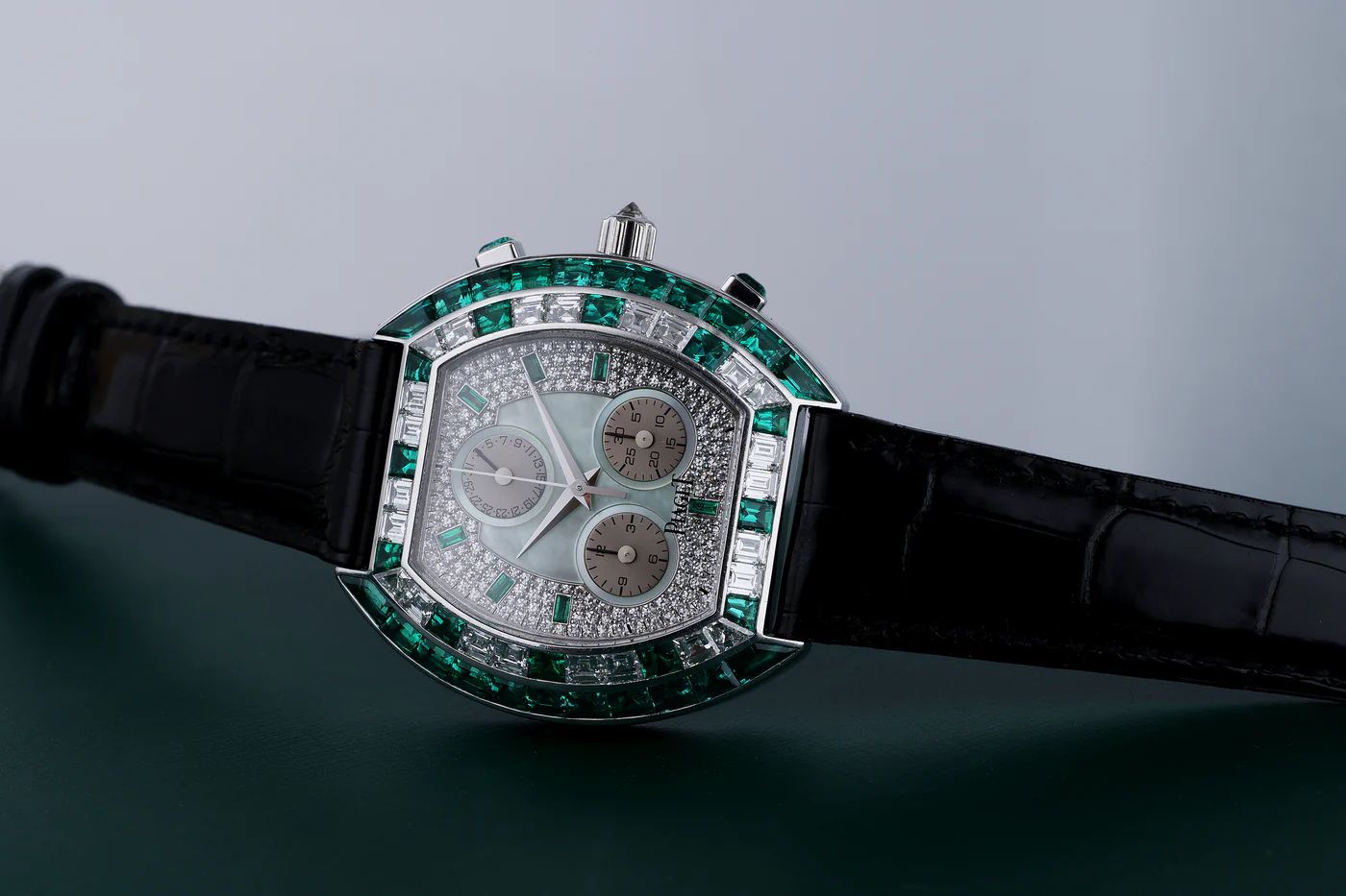 Vintage Piaget Chronograph 14488 18k WG, Emerald & Diamonds wristwatch | London 🇬🇧