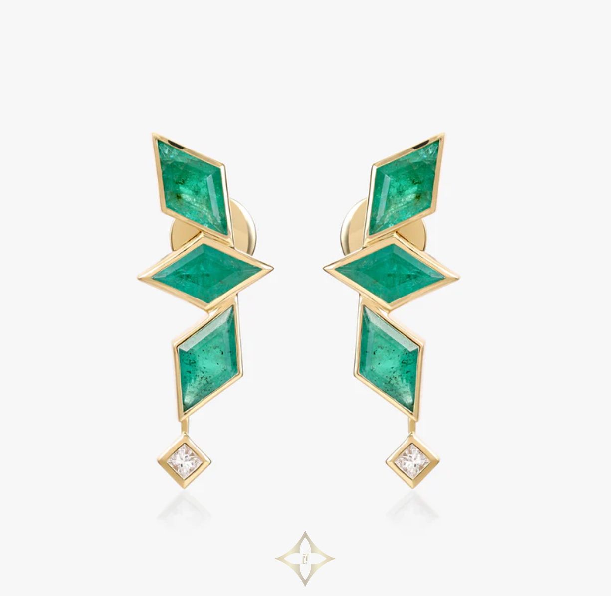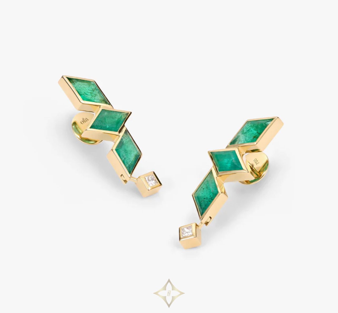 Waha emerald earrings Price: 172.675.421₫ Product Details As part of the Foug collection, the Waha earrings mix unique Saudi characteristics with contemporary style. These stunning studs are handcrafted in 18k yellow gold and set with 6 lozenge-cut emeralds, and 2 princess-cut diamonds. Made to Order Item - Please allow 2-3 weeks Material: 18 carat yellow gold Gold weight (grams): 7.01 Emerald cut: Lozenge Emerald weight (carat): 3.81 Diamond cut: Princess Diamond weight (carat): 0.03 Diamond Clarity: VS1 - VS3 Setting: Bezel Finish: Full Satin Design's Notes Embrace the pinnacle of sophistication with our Waha stud earrings. Blending the grace of traditional art forms, these meticulously handcrafted treasures evoke the beauty of Saudi heritage. The emeralds and diamonds, uniquely cut to honor our artistry, shimmer against 18k yellow gold, embodying an unparalleled blend of cultural significance and refinement. Cherish your 18 carat solid gold and diamond jewelry for a lifetime: store separately in a soft pouch or jewelry box and avoid exposure to chemicals. To restore shine, clean with luke warm water and soap and dry gently with a soft cloth. Periodically check prongs and settings for security. Ofa Jewellery Trading LLC  The Binary by Omniyat No.117, Dubai, UAE Email: Info@ofaofficial.com Call/WhatsApp: +971 501156116