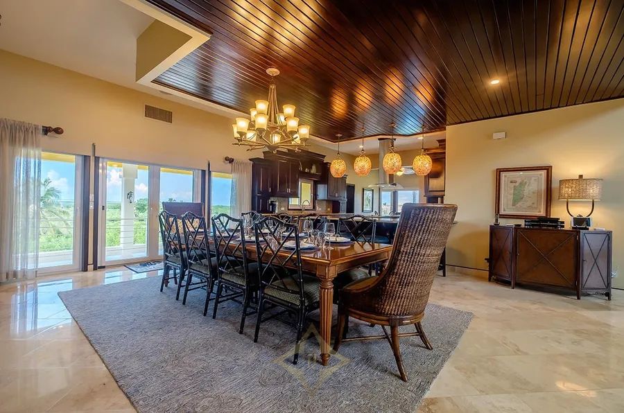 Thoughtfully designed and impeccably maintained, the estate features five beautifully appointed bedrooms — each with ensuite bath and private veranda (4 of the bedrooms have Ocean views) — alongside expansive indoor and outdoor living areas ideal for entertaining or quiet retreat. The main level hosts a chef’s kitchen, butler’s pantry, living room, a wet bar, formal dining, and three suites, two of which include open-air showers for a unique Belizean touch.
