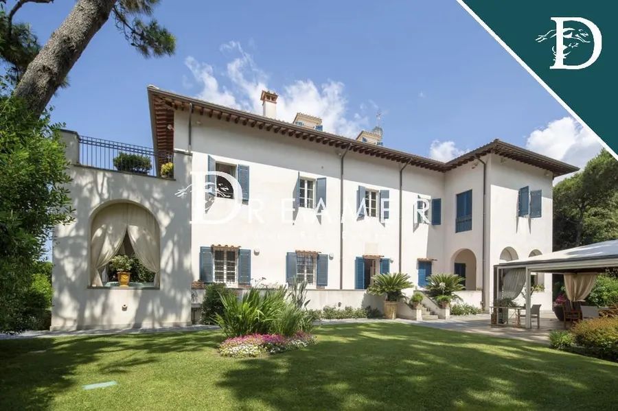 Stunning seafront villa with pool and tennis court for sale in Ronchi, on the Apuan Riviera, just 5 minutes from Forte dei Marmi. During the first half of the 20th century, this area was one of the most exclusive seaside destinations, favored by the Florentine and Roman elite, who built elegant residences surrounded by large private parks. This villa belonged to a historic Florentine family prominent in the fashion world, who chose it for long summer stays, preserving its character and prestige over time. The property extends over a total area of approximately 1,100 square meters and includes 8 bedrooms and 8 bathrooms, as well as a private pool, a tennis court, and a generously sized park with numerous parking spaces.