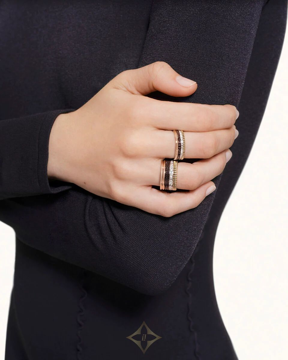 A signature piece for Boucheron since 2004, the Quatre Classique ring and its various codes reflect the inspiration and history of the House. The Clou de Paris is reminiscent of the city where it was born. The Grosgrain is a nod to the couture origins of the Boucheron family. A strong, contrasting, graphic identity that makes a lasting impression.