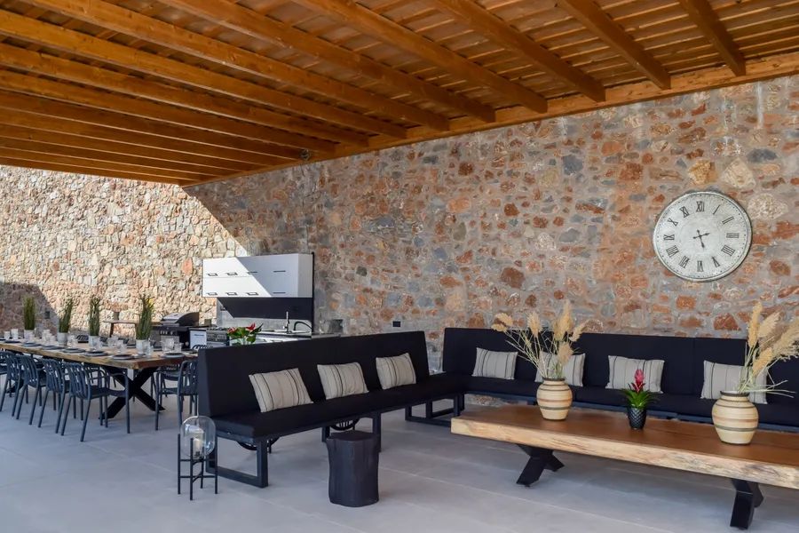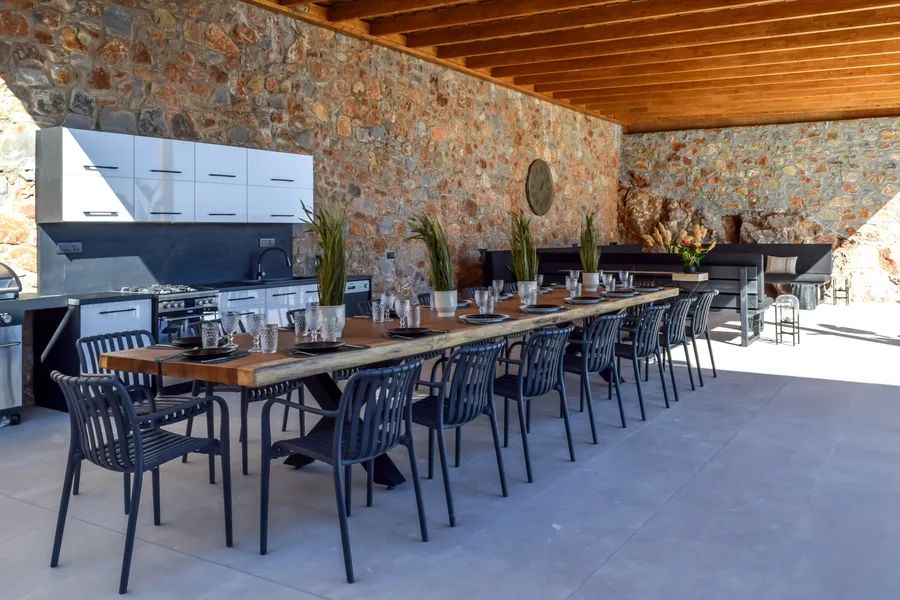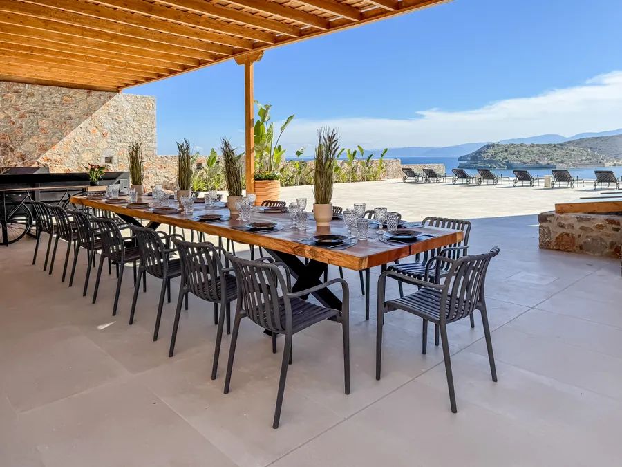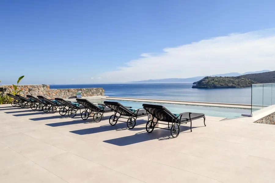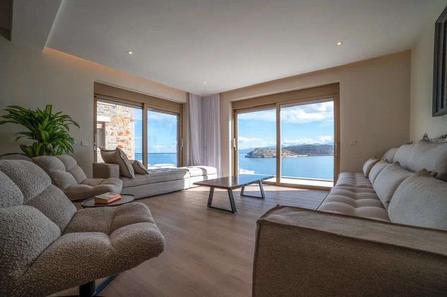 Eloura is an unparalleled seafront villa nestled along the pristine shoreline of Plaka in Elounda, a true statement of timeless elegance and contemporary luxury. This exceptional 800 square meter residence is set on a private 4912 square meter estate and enjoys unobstructed panoramic views of the historic island of Spinalonga, one of the most iconic and culturally significant landmarks in the Mediterranean. Located just four kilometers from cosmopolitan Elounda and fourteen kilometers from Agios Nikolaos, Eloura occupies a prime position on the elite northeast coast of Crete, where privacy natural beauty and prestige converge in perfect harmony.