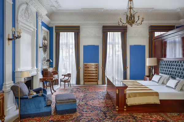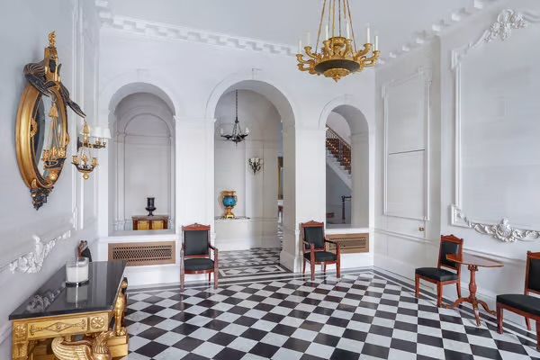 Spanning an expansive 30,941 square feet over seven floors, the building has eight principal bedrooms, five guest bedrooms and ancillary staff accommodation and has a well-appointed, thoughtfully designed interior that respects the property’s history. Built by the celebrated architect George Basevi in 1824, the original features in the house have been meticulously