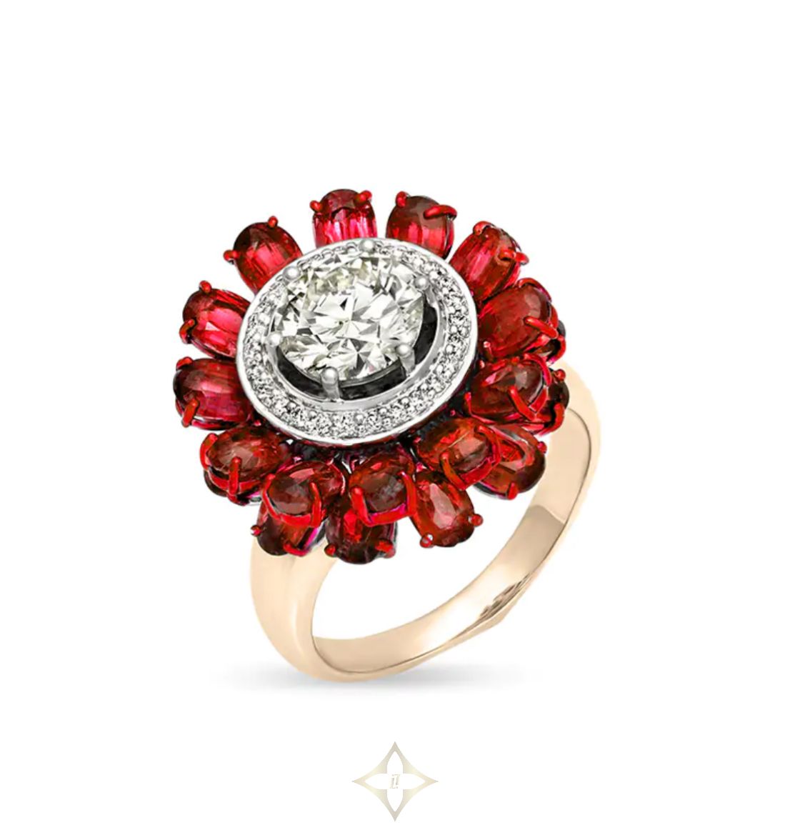 RUBY DIAMOND SOLITAIRE SNOWFLAKE RING